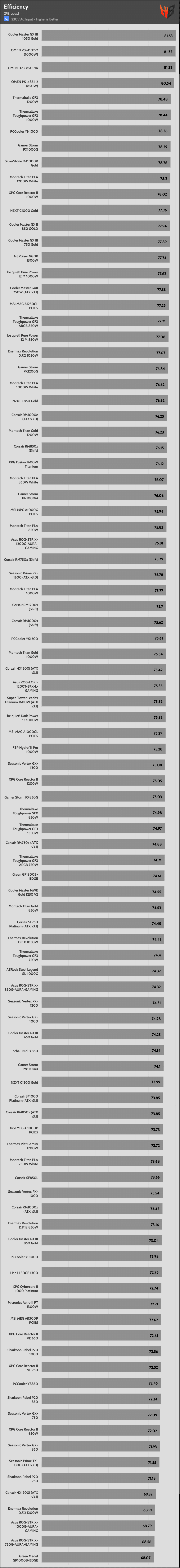 The ATX spec defines super-light loading at only 115V and not 230V. That said, we also take 2% load efficiency readings at 230V.