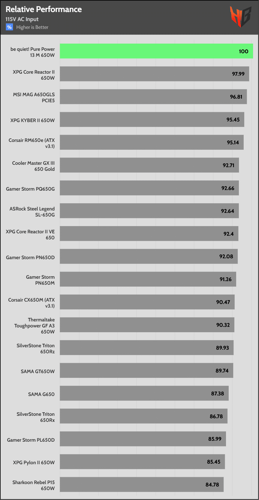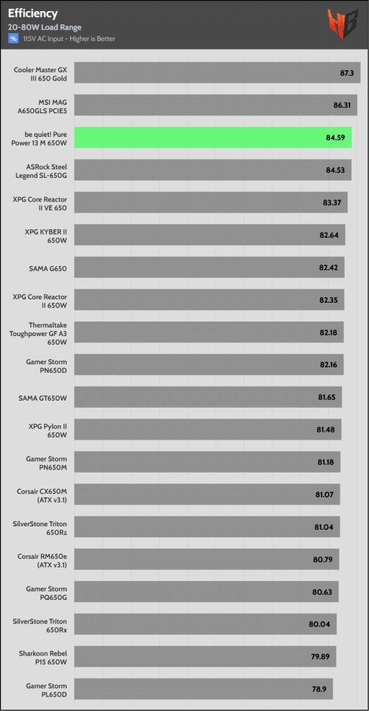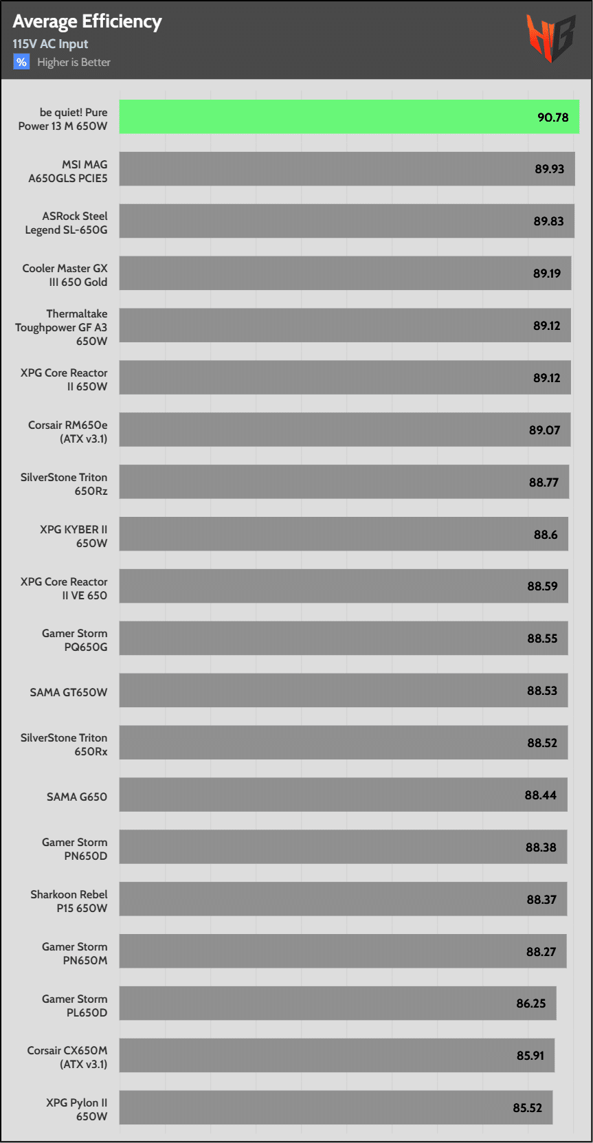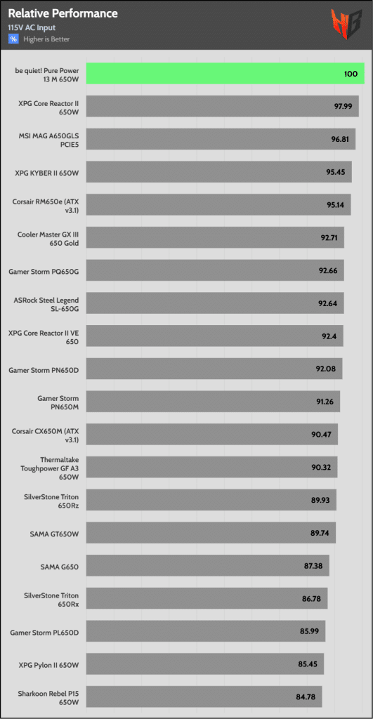 | Highest Average Efficiency (115V) | be quiet! Pure Power 13 M 650W | MSI MAG A650GLS PCIE5 | ASRock Steel Legend SL-650G |
