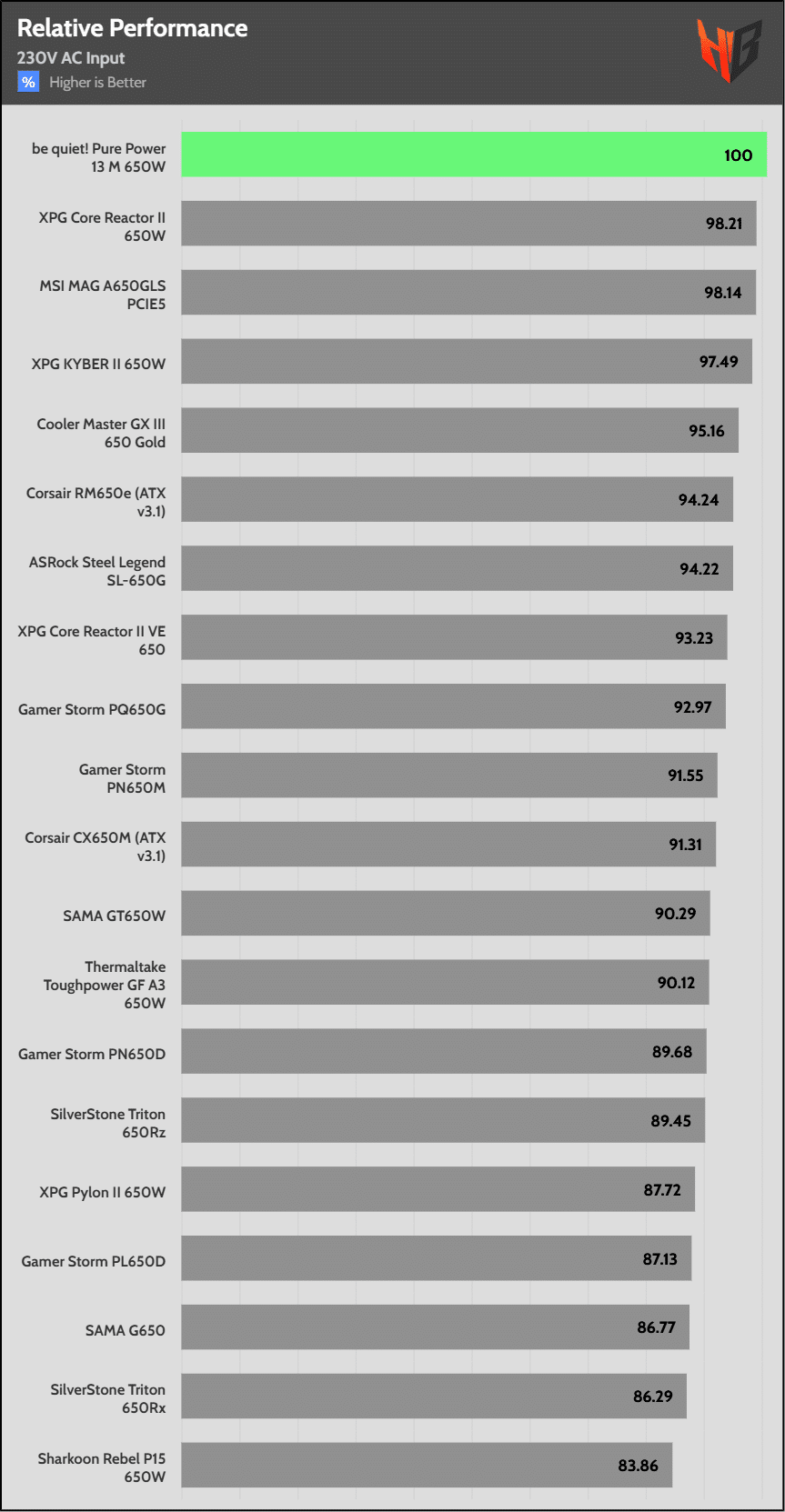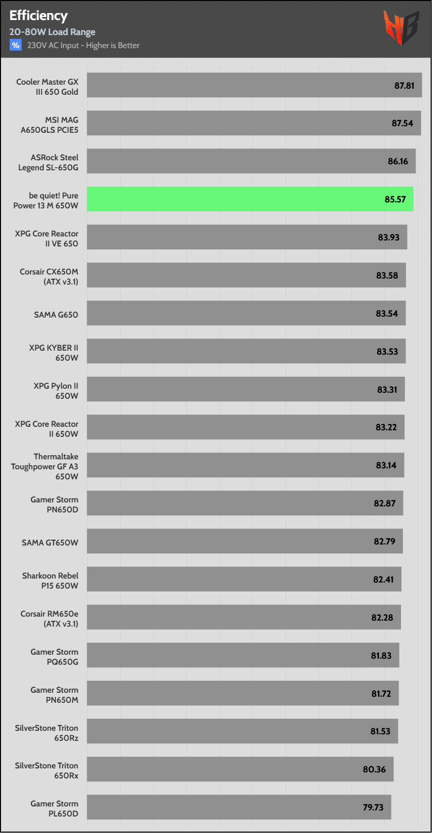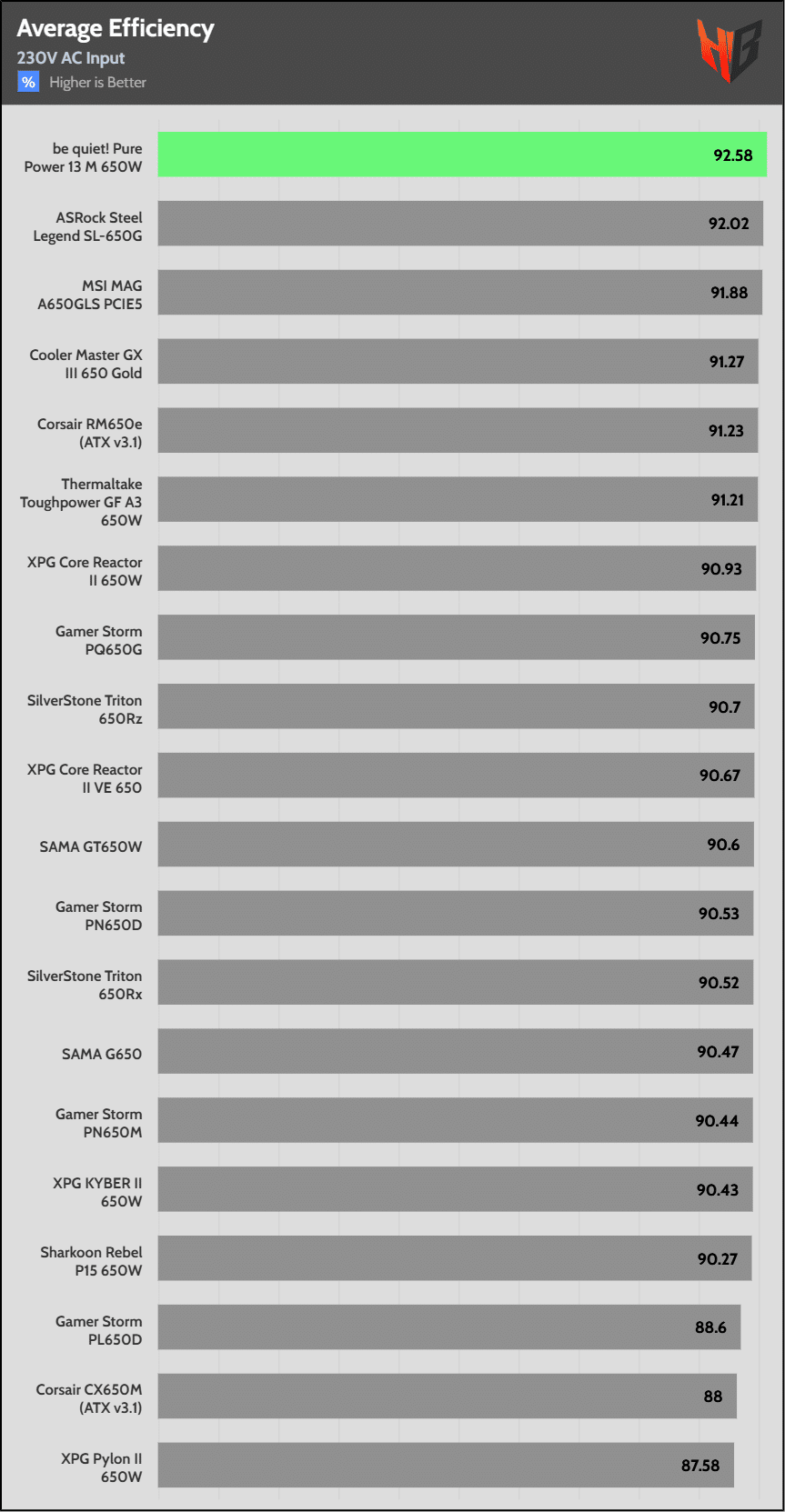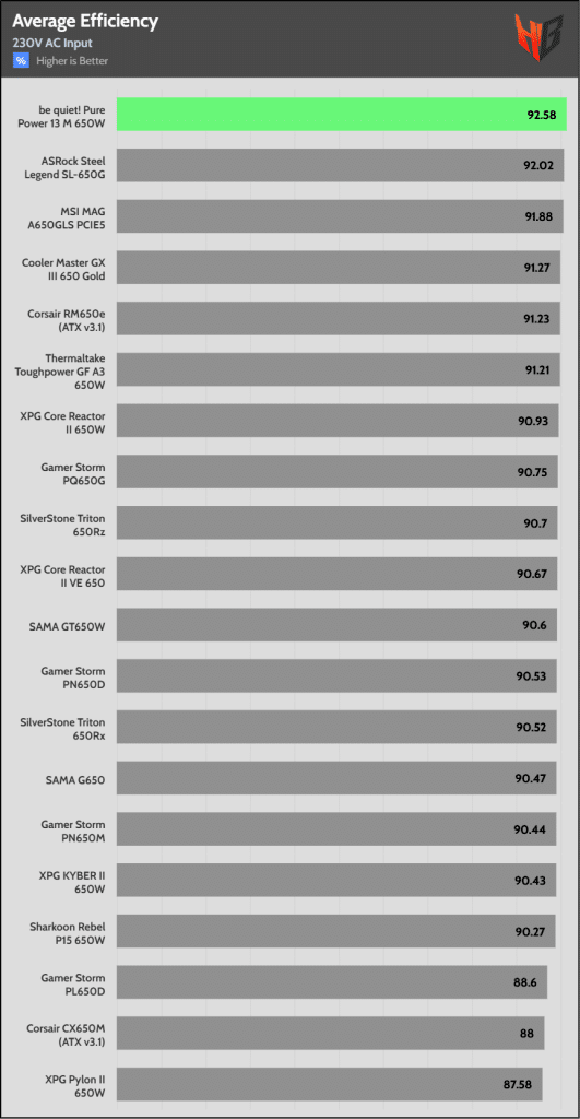 | Highest Average Efficiency (230V) | be quiet! Pure Power 13 M 650W | ASRock Steel Legend SL-650G | MSI MAG A650GLS PCIE5 |