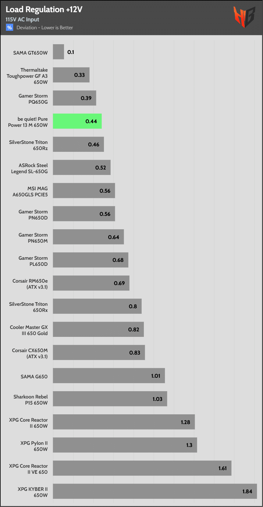 | Best 12V Rail Load Regulation (115/230V) | SAMA GT650 | Thermaltake Toughpower GF A3 650W | Gamer Storm PQ650G |
