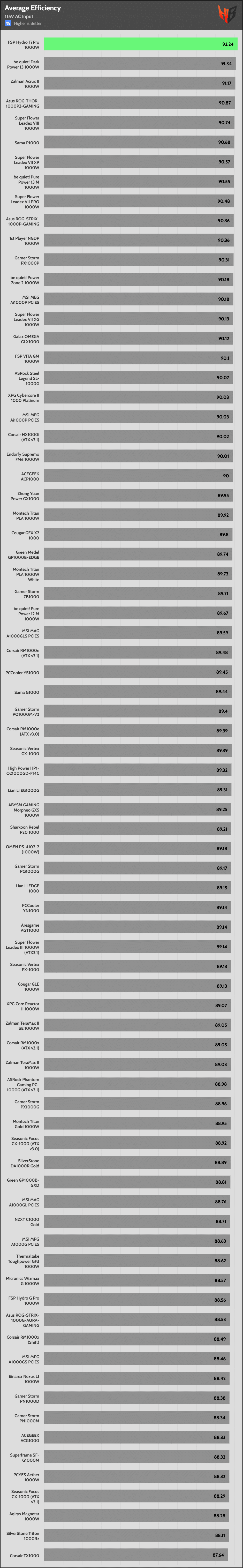 | Highest Average Efficiency (115/230V) | FSP Hydro Ti Pro 1000W | be quiet! Dark Power 13 1000W | Zalman Acrux II 1000W |