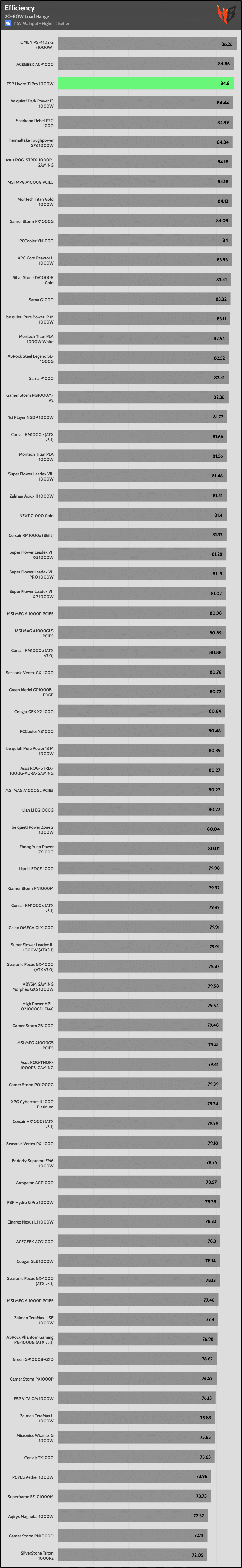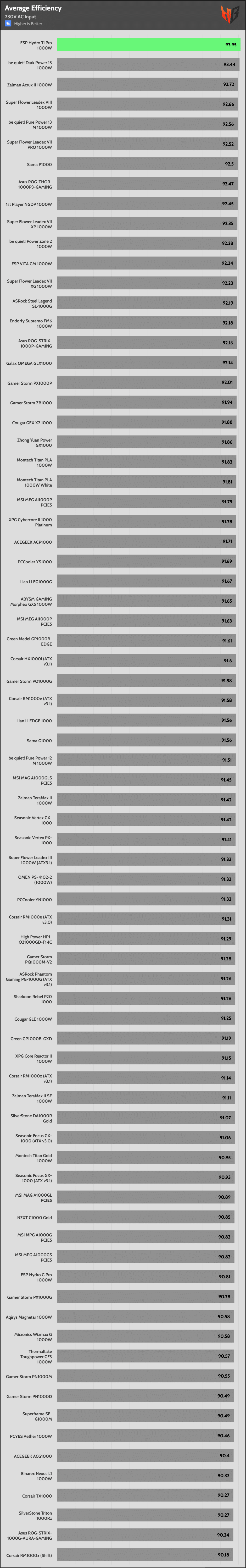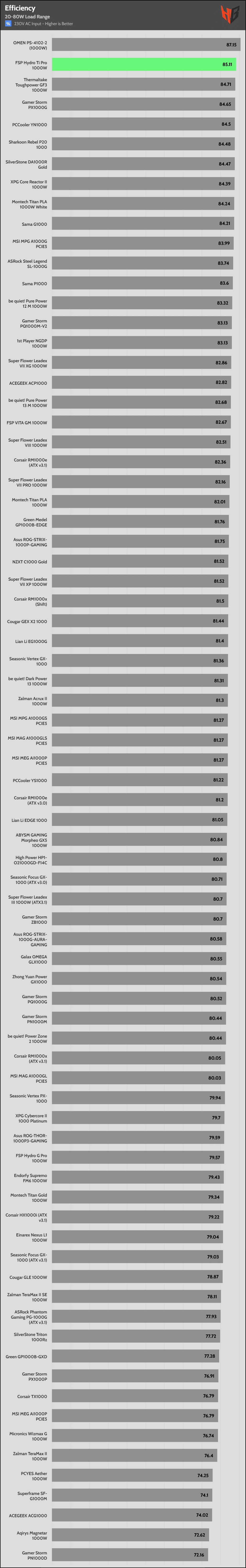 | Highest Average Efficiency (Light Loads – 230V) | OMEN PS-4102-2 | FSP Hydro Ti Pro 1000W | Thermaltake Toughpower GF3 1000W |