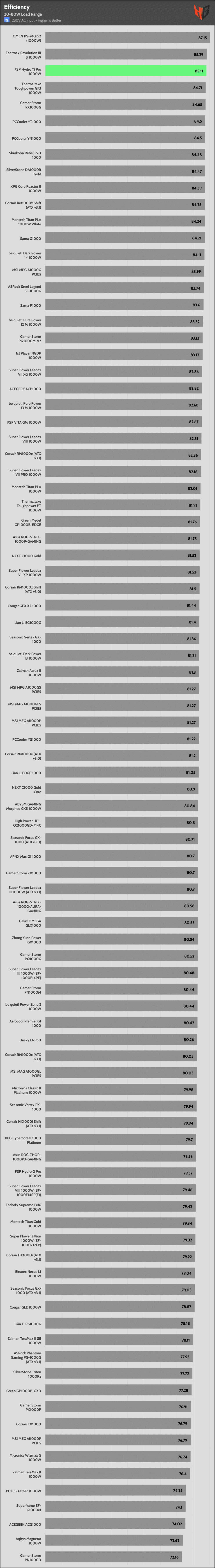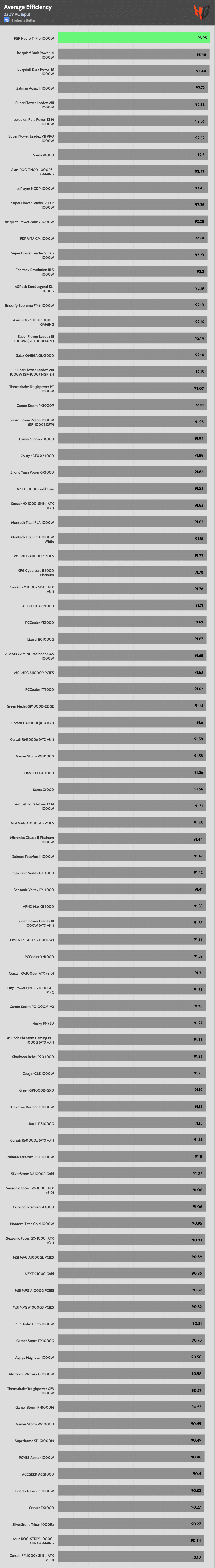 | Highest Average Efficiency (115/230V) | FSP Hydro Ti Pro 1000W | be quiet! Dark Power 14 1000W | be quiet! Dark Power 13 1000W |