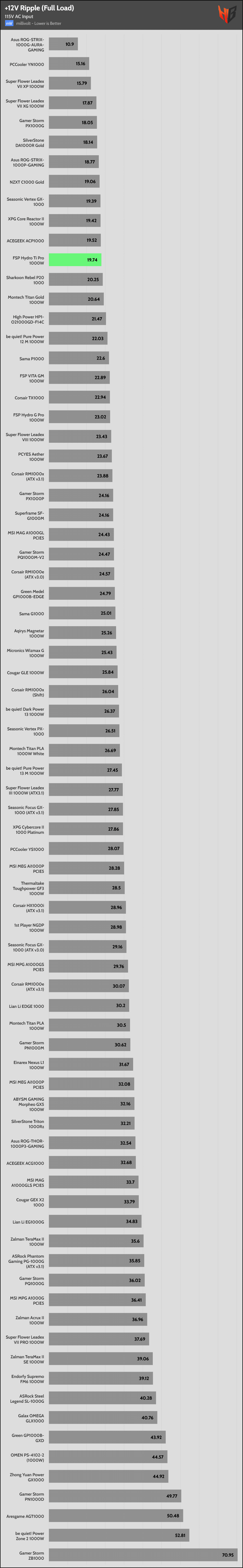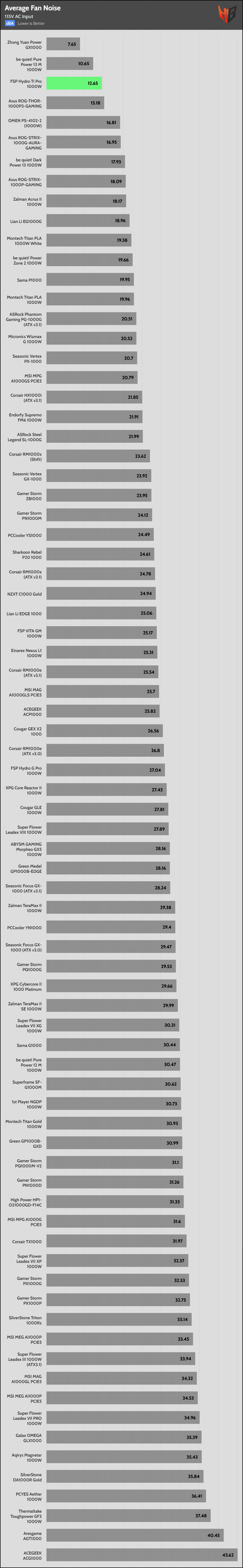 | Lowest Average Noise (115V) | be quiet Pure Power 13 M 1000W | FSP Hydro Ti Pro 1000W | Asus ROG-Thor-1000P3-Gaming |