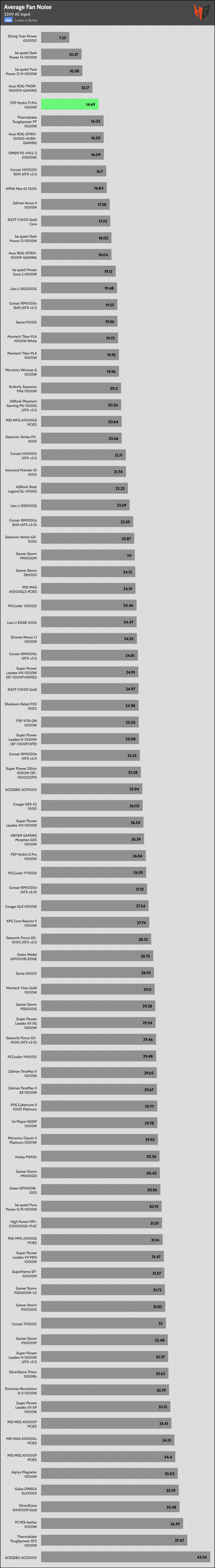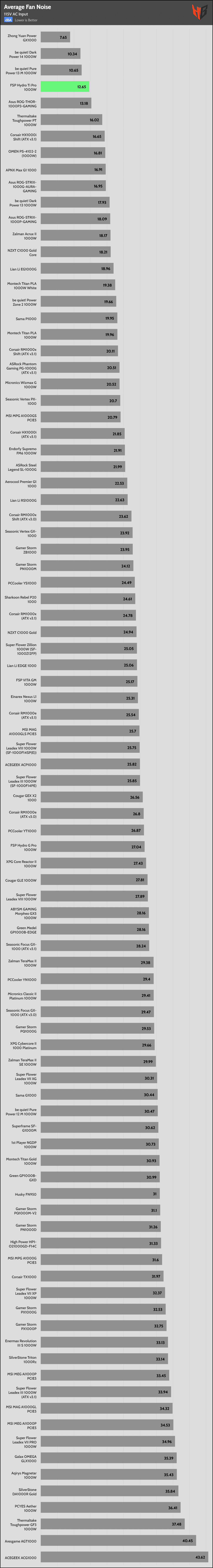 | Lowest Average Noise (115V) | be quiet! Dark Power 14 1000W | be quiet Pure Power 13 M 1000W | FSP Hydro Ti Pro 1000W |