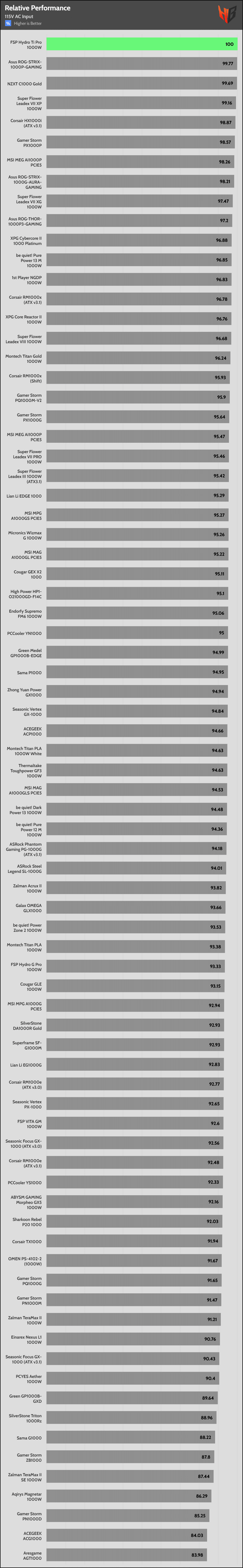 | Best Overall Performance (115V) | FSP Hydro Ti Pro 1000W | Asus ROG-Strix-1000P-Gaming | NZXT C1000 Gold |