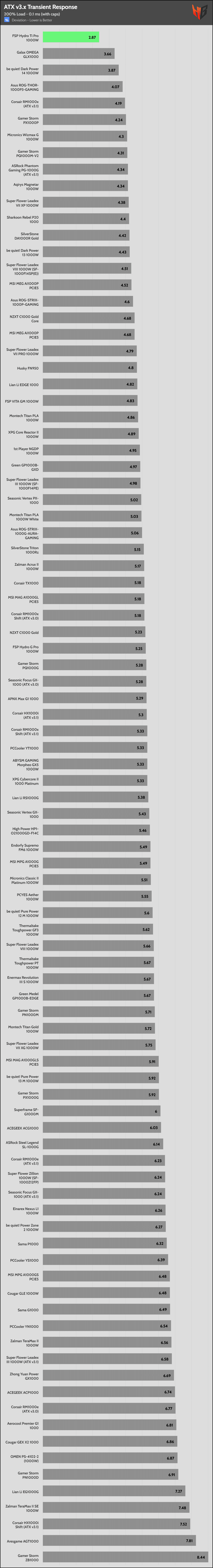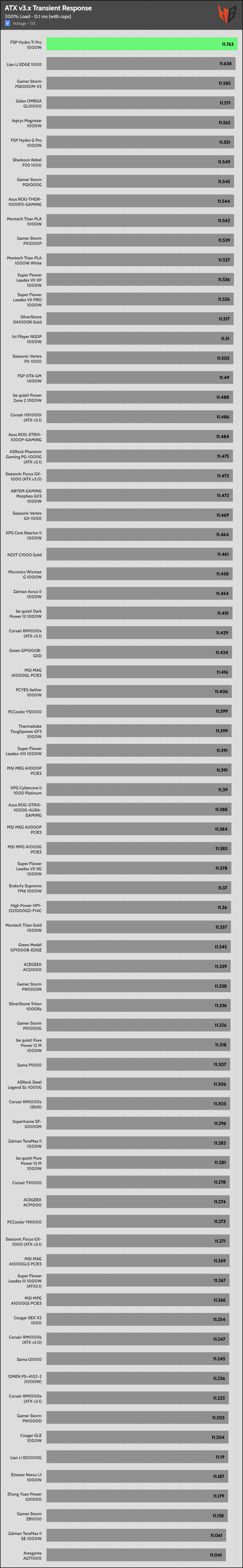 | Best ATX v3.x Transient Response (200% Load) | FSP Hydro Ti Pro 1000W | Lian Li EDGE 1000 | Gamer Storm PQ1000M-V2 |