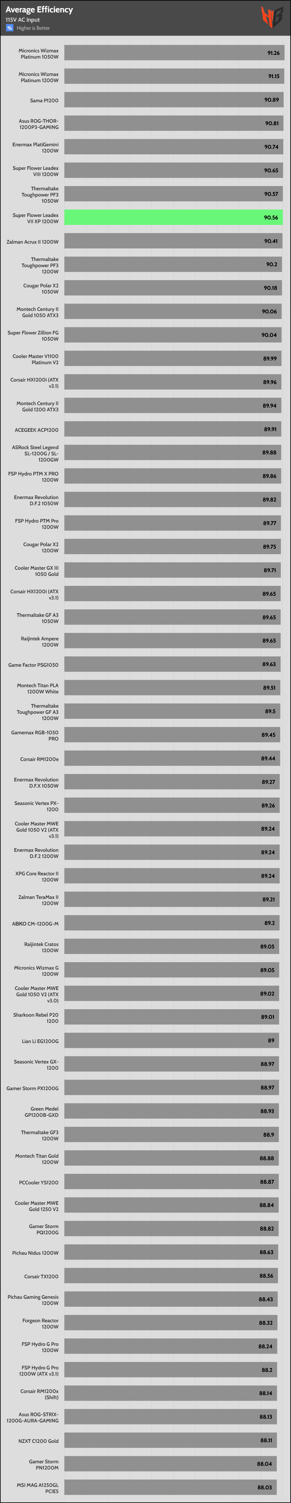 | Highest Average Efficiency (115/230V) | Micronics Wizmax Platinum 1050W | Micronics Wizmax Platinum 1200W | SAMA P1200 |