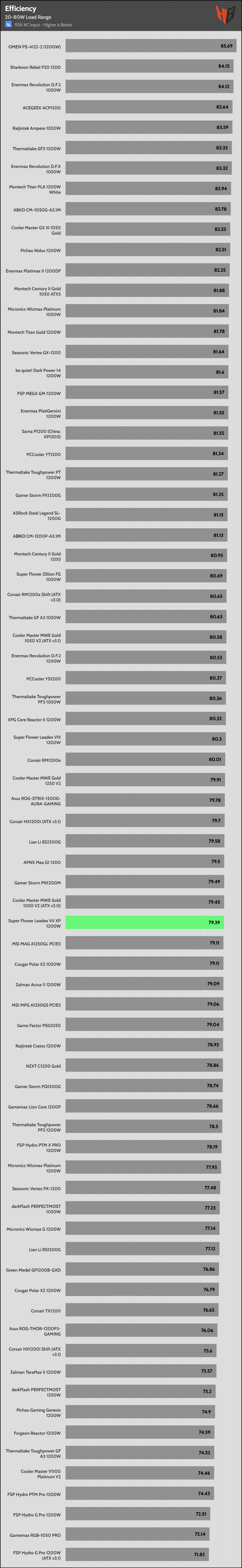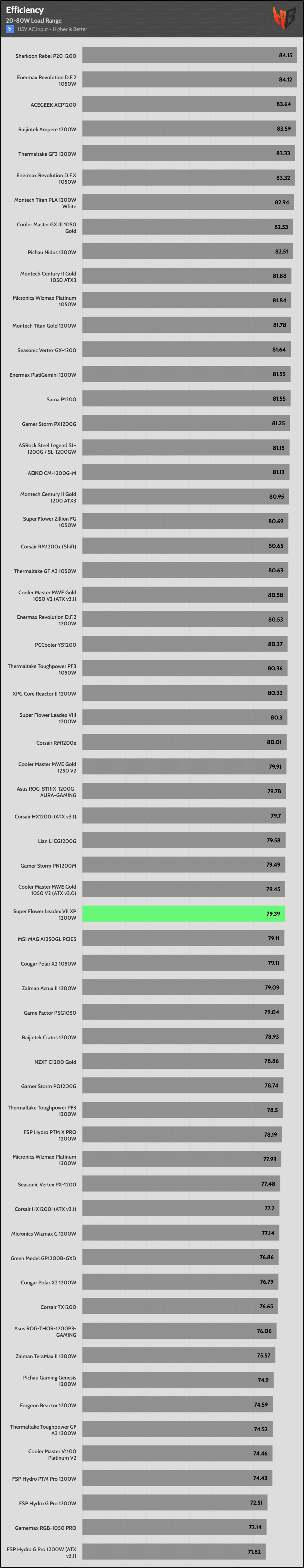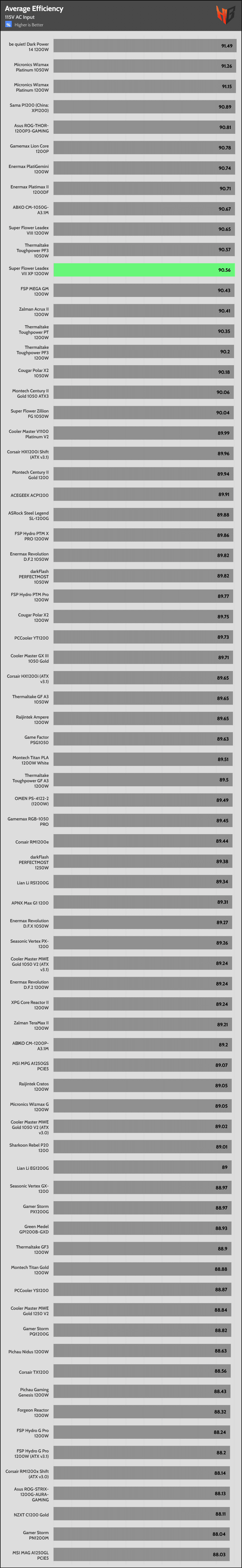 | Highest Average Efficiency (Light Loads – 115V) | Sharkoon Rebel P20 1200 | Enermax Revolution D.F.2 1050W | ACEGEEK ACP1200 |