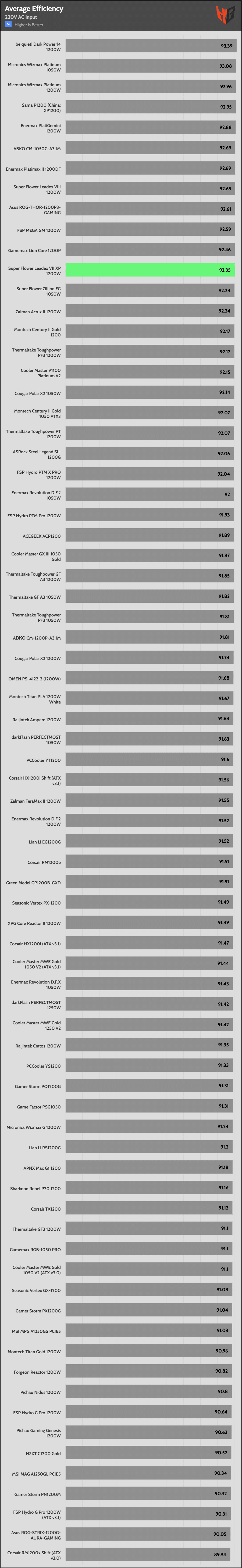 | Highest Average Efficiency (115/230V) | be quiet! Dark Power 14 1200W | Micronics Wizmax Platinum 1050W | Micronics Wizmax Platinum 1200W |