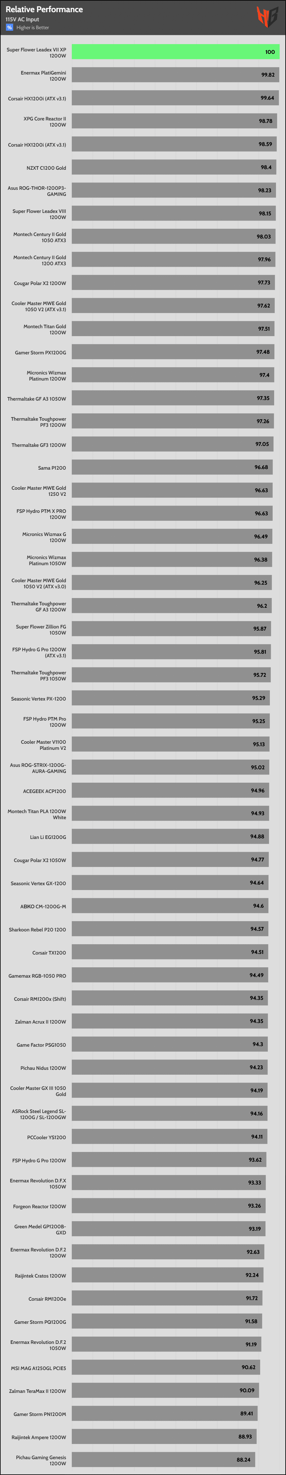 | Best Overall Performance (115V) | Super Flower Leadex VII XP 1200W | Enermax PlatiGemini 1200W | Corsair HX1200i (ATX v3.1) |