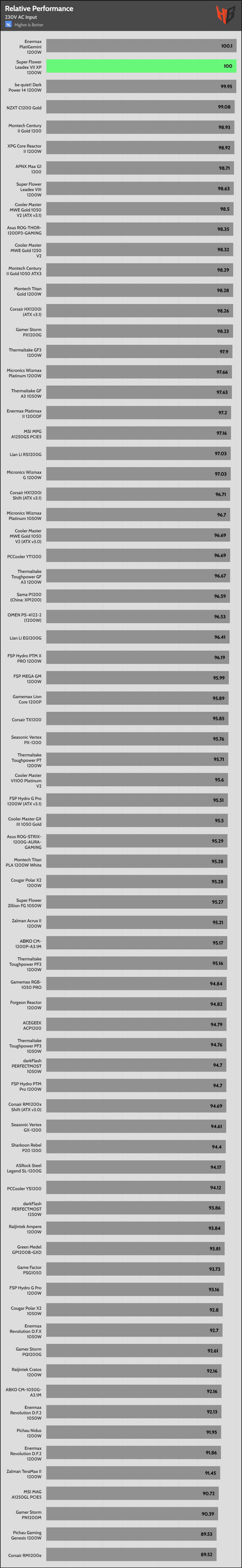 | Best Overall Performance (230V) | Enermax PlatiGemini 1200W | Super Flower Leadex VII XP 1200W | be quiet! Dark Power 14 1200W |