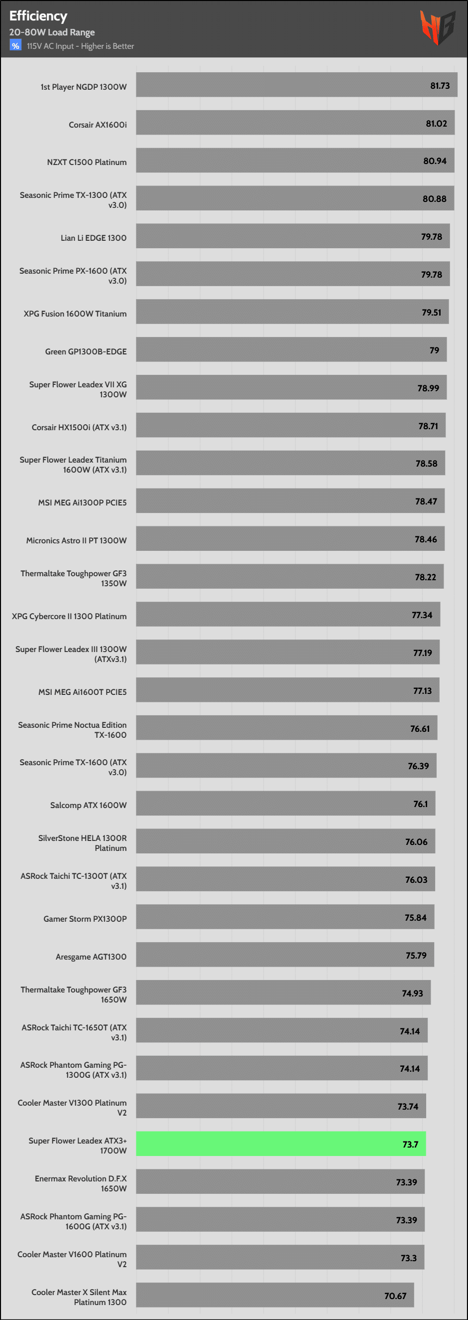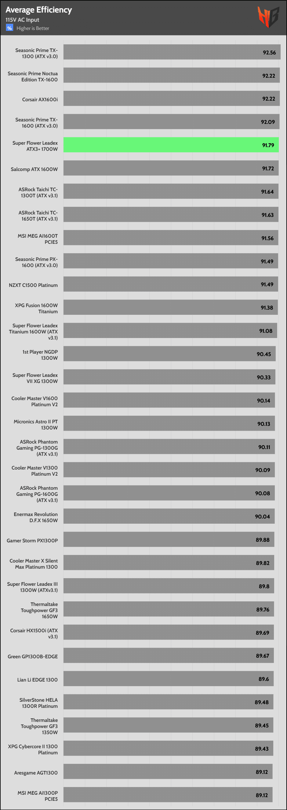 | Highest Average Efficiency (115V) | Seasonic Prime TX-1300 | Seasonic Prime Noctua Edition TX-1600 | Corsair AX1600i |