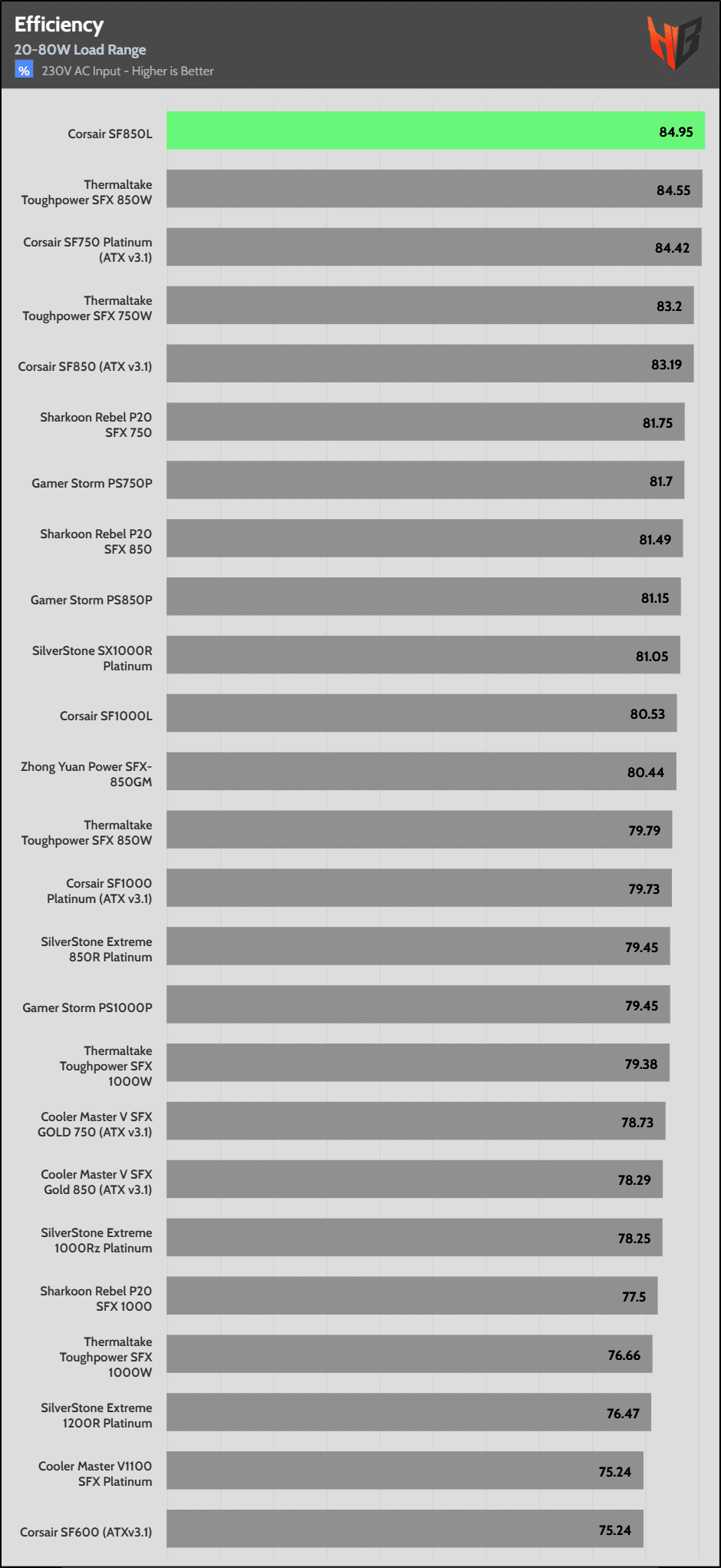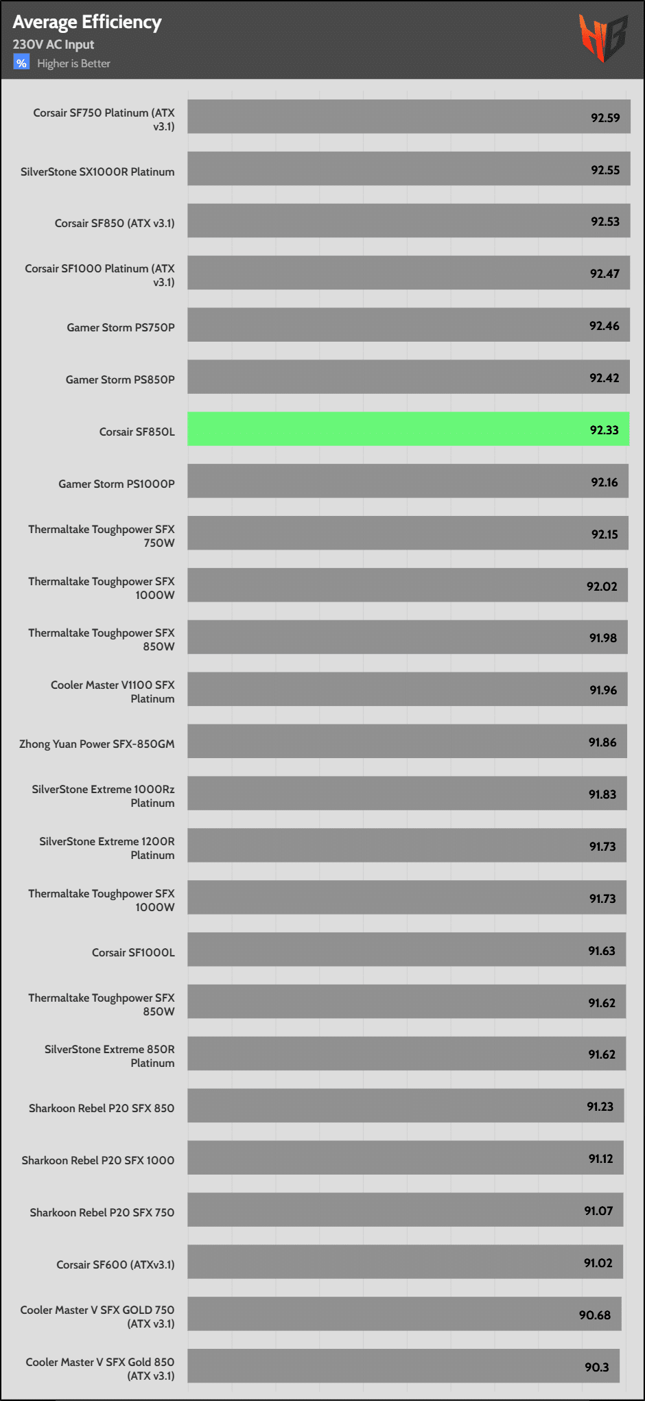 | Highest Average Efficiency (230V) | Corsair SF750 | SilverStone SX1000R Platinum | Corsair SF850 |