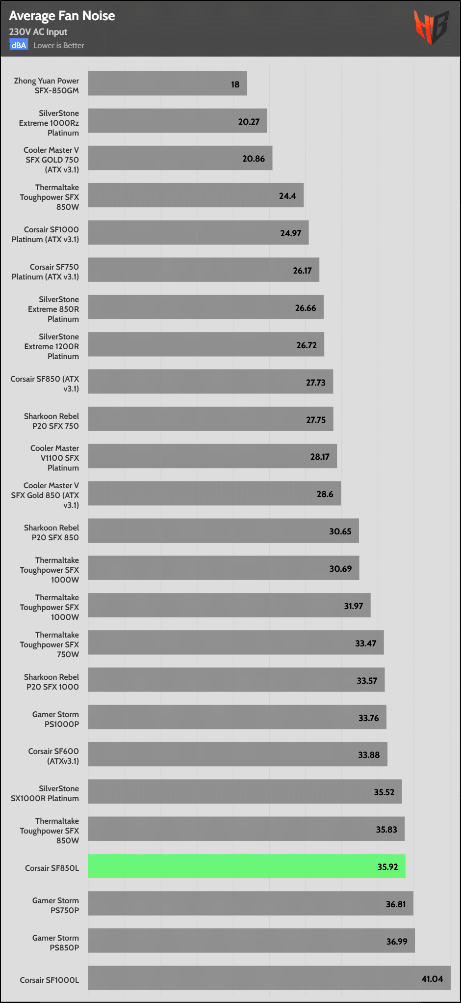 | Lowest Average Noise (115/230V) | SilverStone Extreme 1000Rz | Cooler Master V SFX Gold 750 (ATX v3.1) | Thermaltake Tough Power SFX(L) 850 |