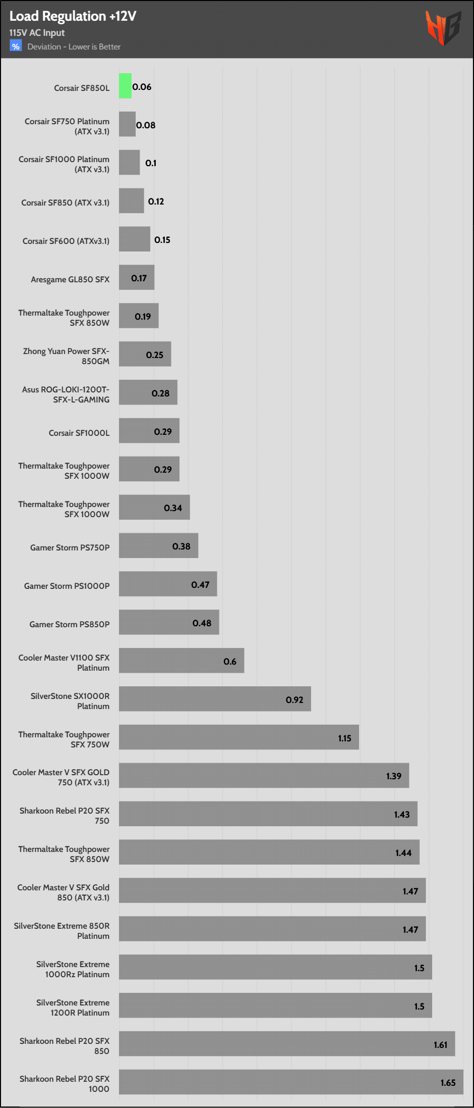 | Best 12V Rail Load Regulation (115V) | Corsair SF850L | Corsair SF750 | Corsair SF1000 |