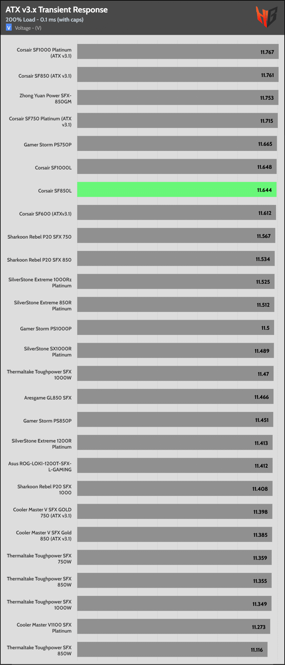 | Best ATX v3.x Transient Response (200% Load) | SF1000 | Corsair SF850 | Corsair SF750 |