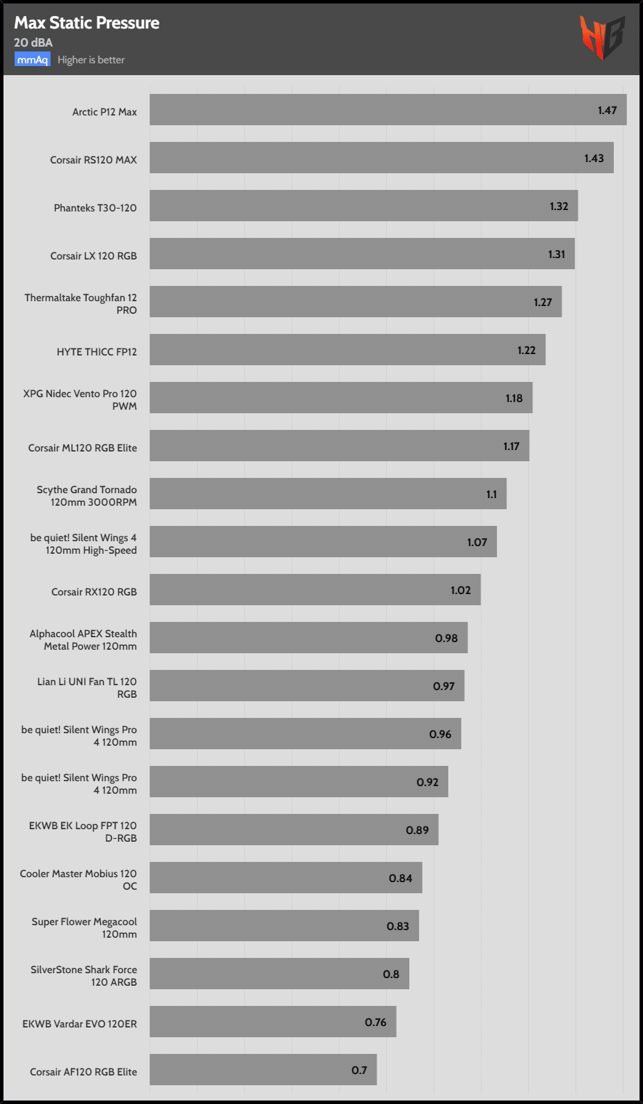 Nevertheless, the Arctic P12/14 Max leaves the rest of the fans senseless for both static and airflow applications.