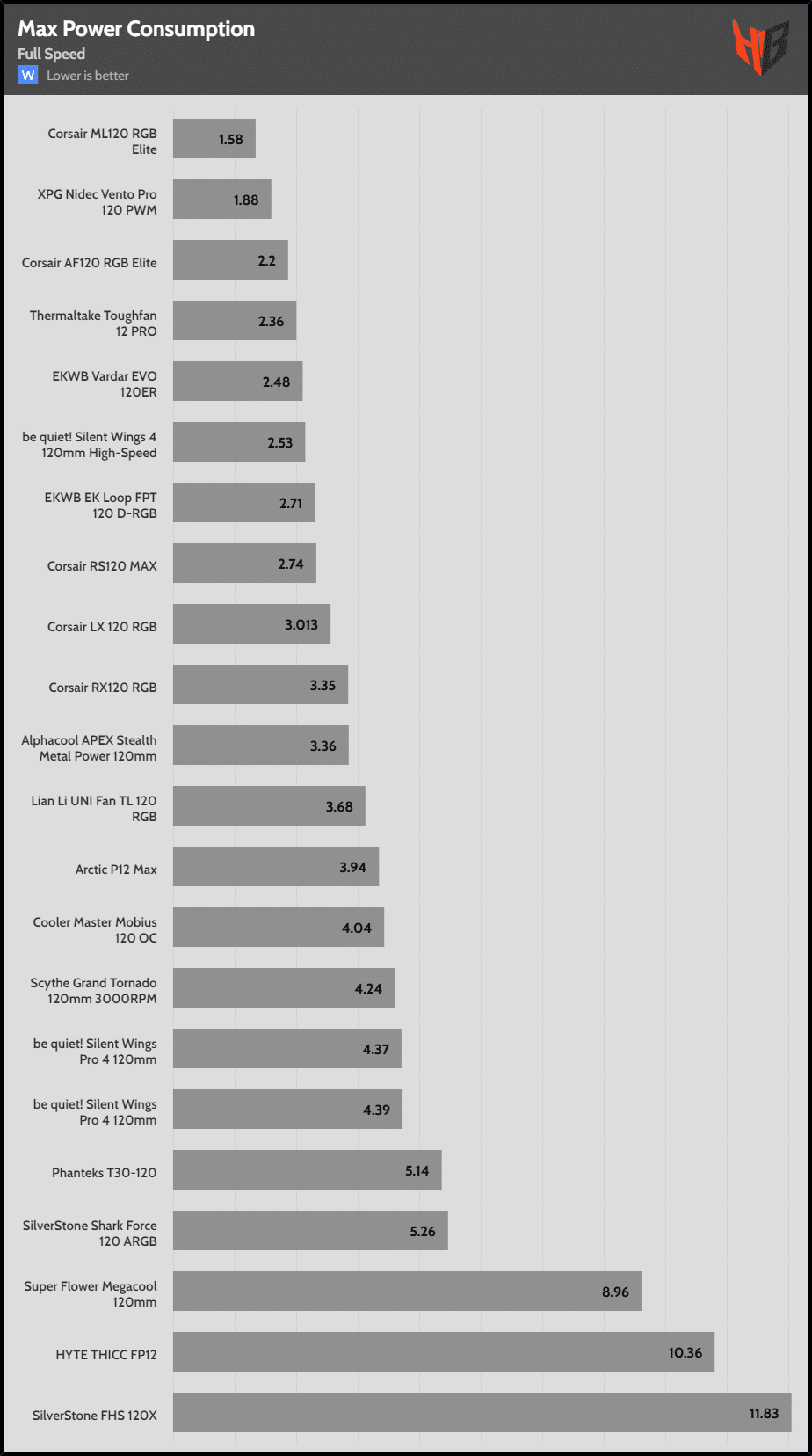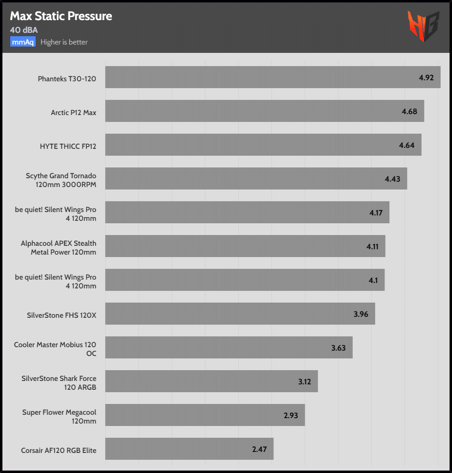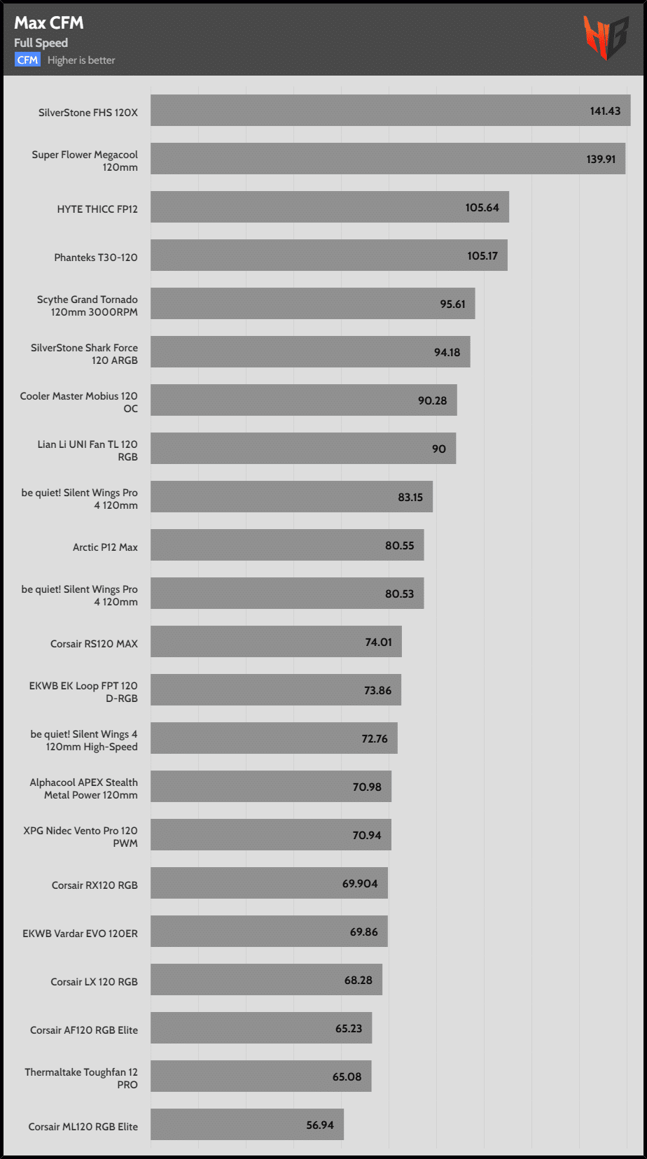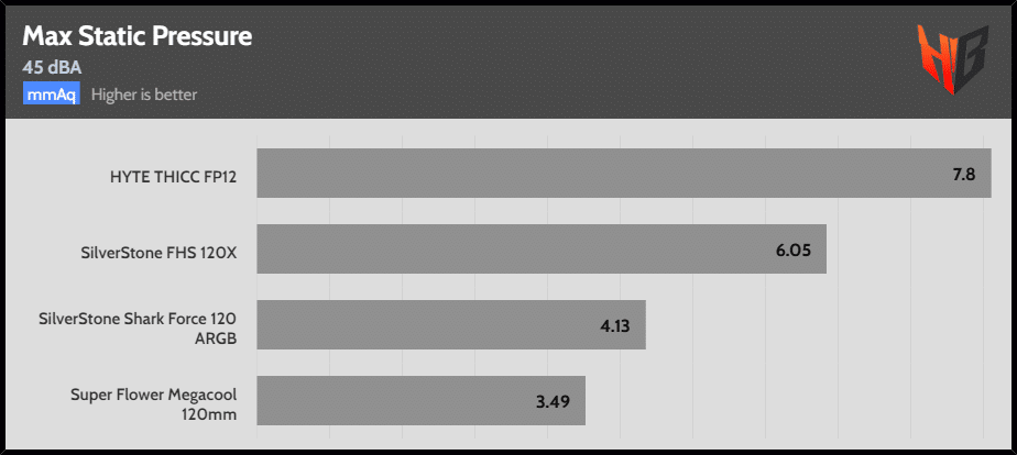 | Max Speed | SilverStone FHS 120X | HYTE THICC PF12 | Super Flower Megacool 120mm |
