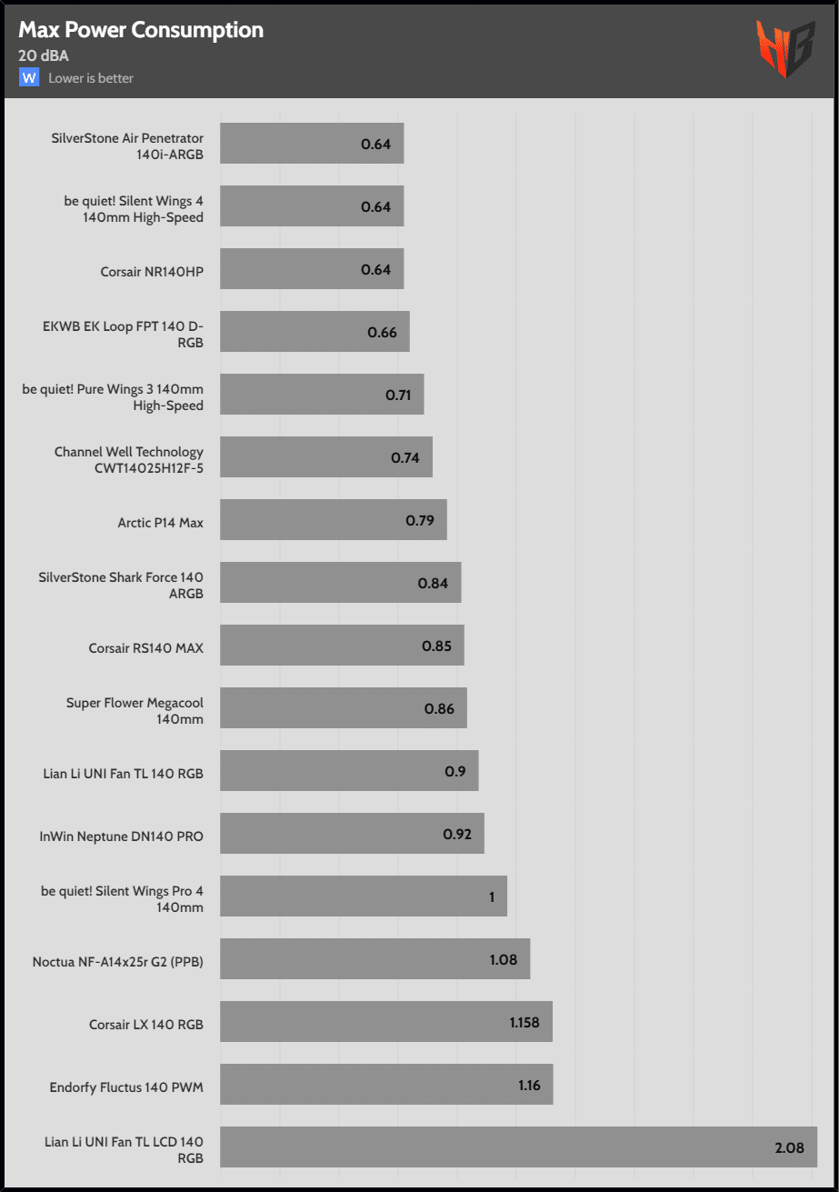 | 40 dBA | Arctic P14 Max | SilverStone Shark Force 140 ARGB | Corsair NR140HP |