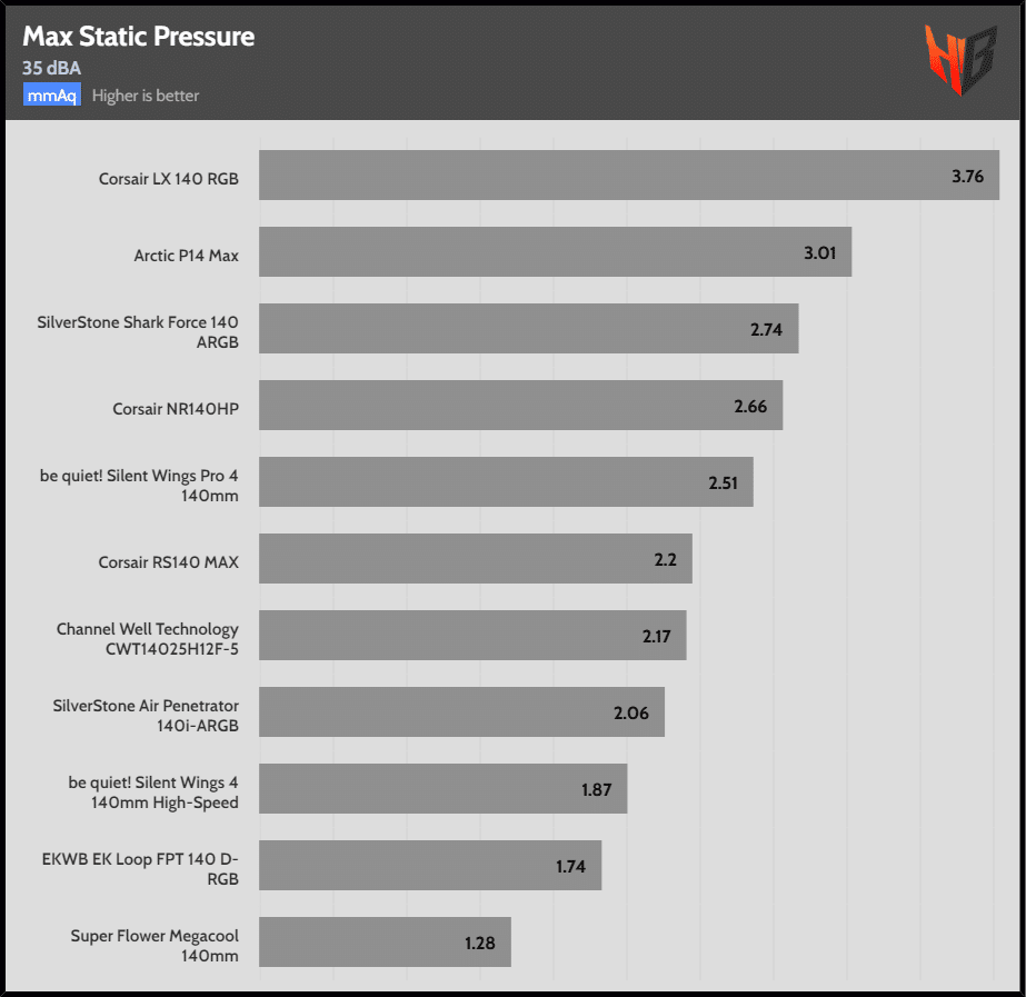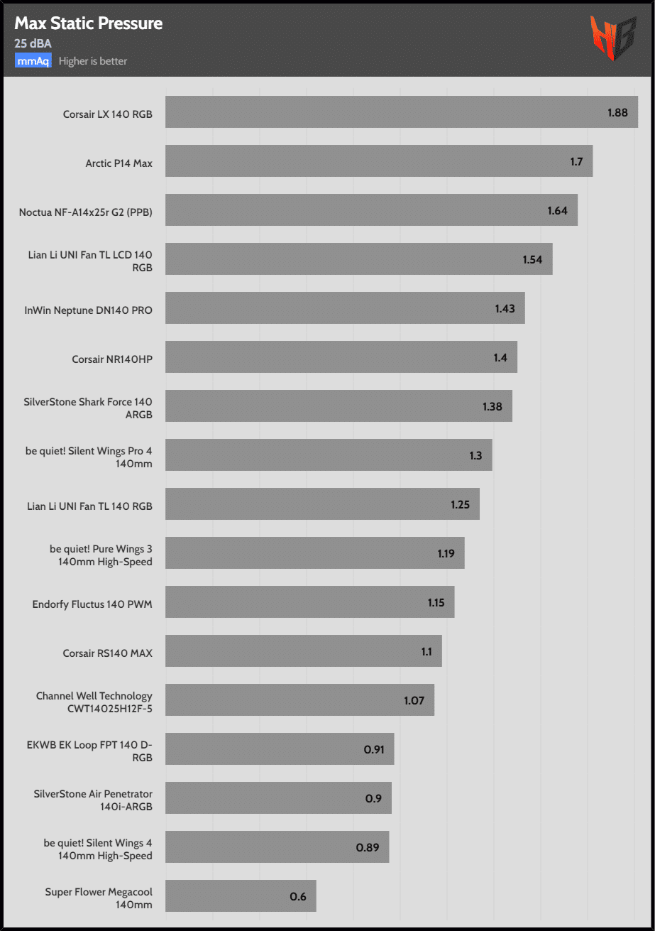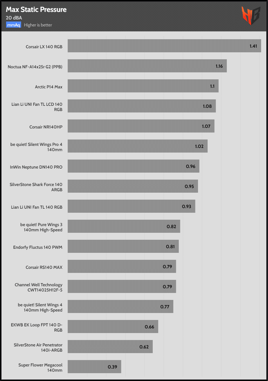 Nevertheless, the Arctic P12/14 Max leaves the rest of the fans senseless for both static and airflow applications.