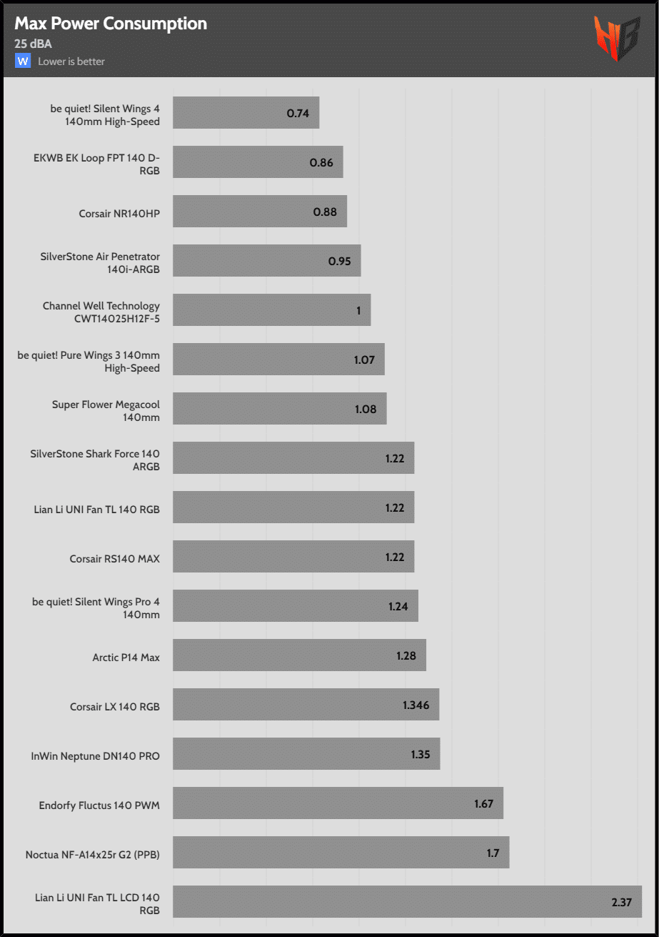 | 25 dBA | Corsair LX 140 RGB | Arctic P14 Max | Noctua NF-A14x25r G2 (PPB) |