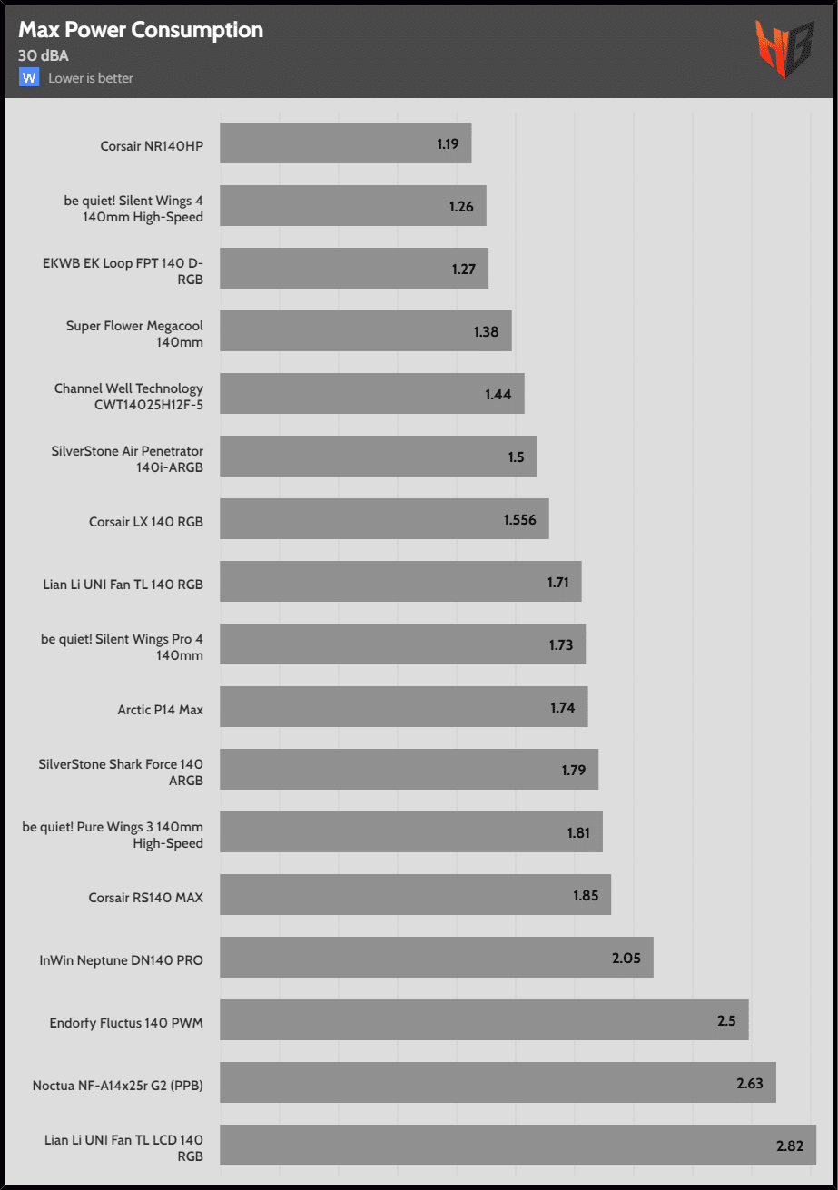 The Corsair NR140HP is a high-performance fan, but I don’t list it in the above table since it is only provided in Corsair’s PSUs.