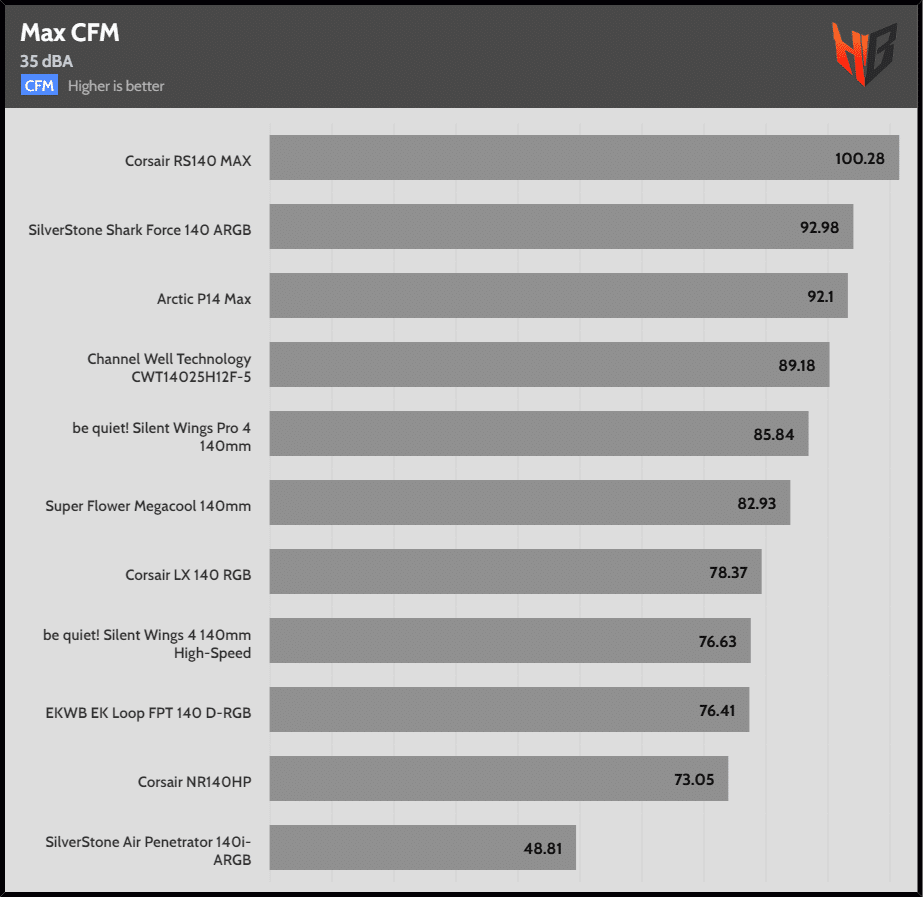 | 35 dBA | Corsair LX 140 RGB | Arctic P14 Max | SilverStone Shark Force 140 ARGB |