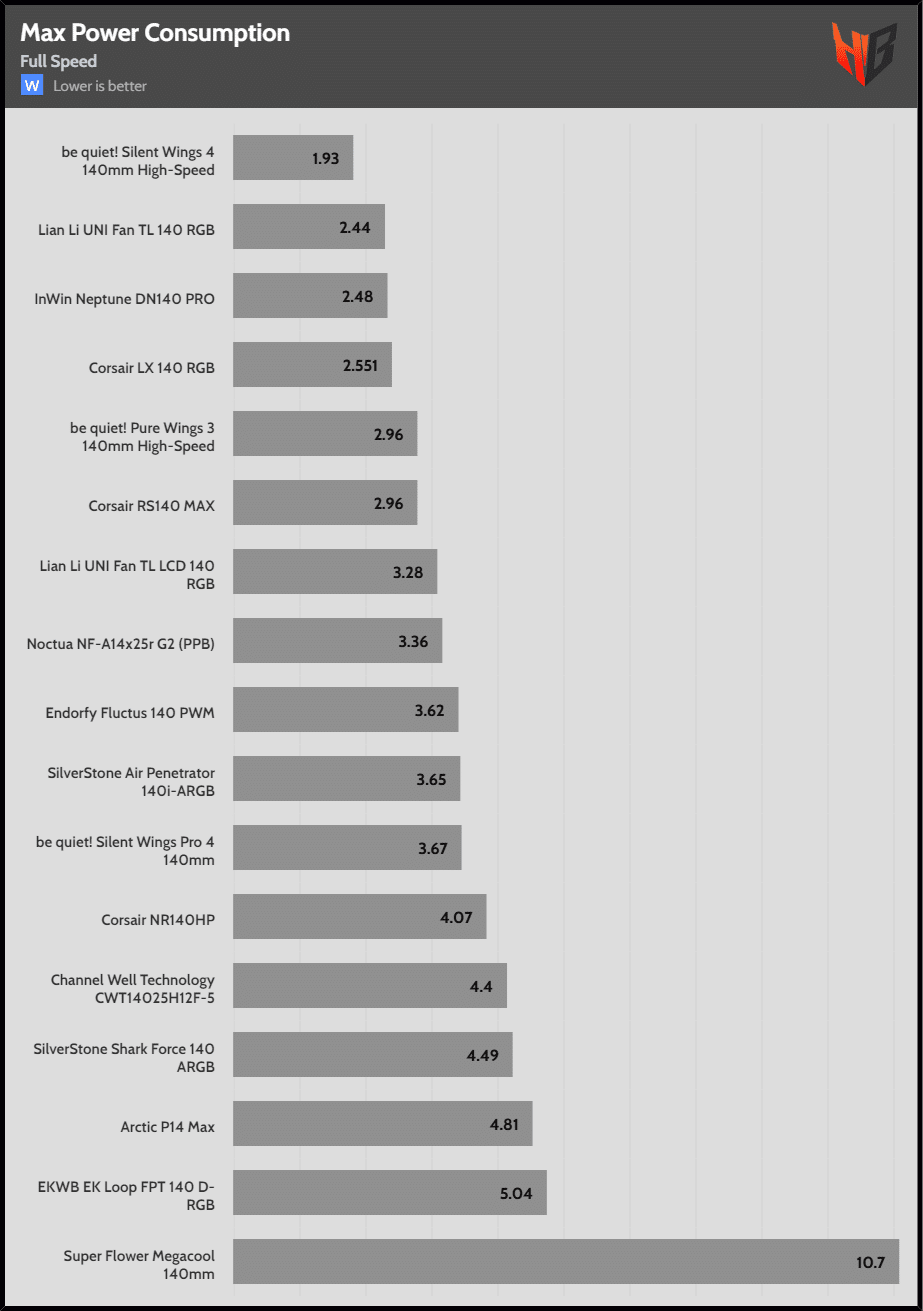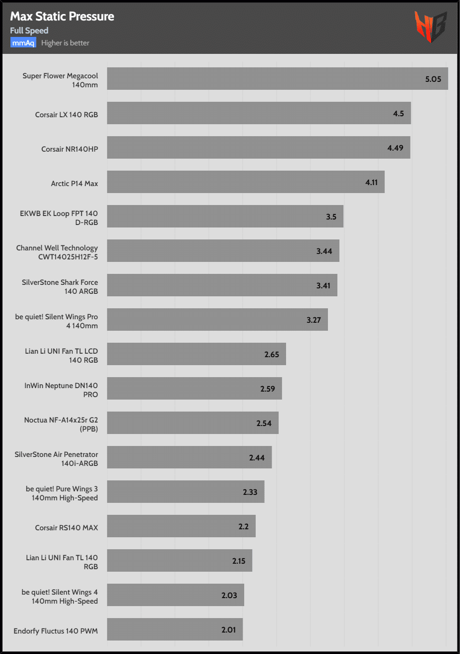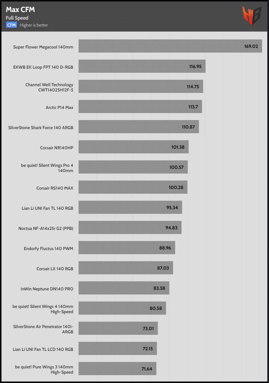 | Max Speed | Super Flower Megacool 140mm | Corsair LX 140 RGB | Corsair NR140HP |