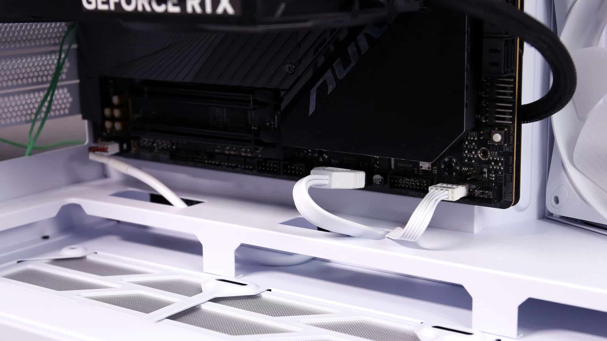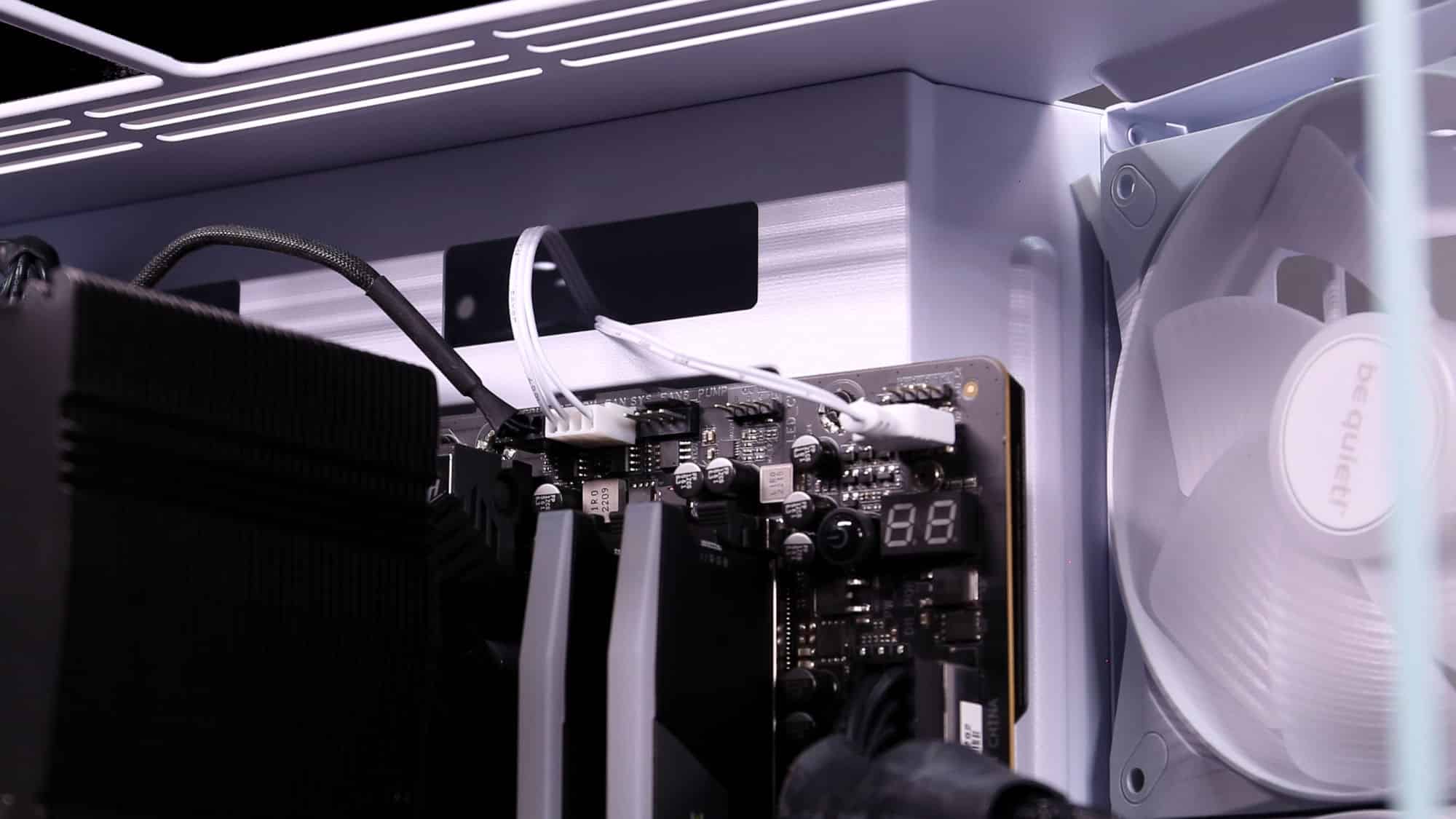 Once again, the color-matched I/O cables deserve praise. Pre-routing all the cables that plug into the motherboard helped a lot in this case. The only note we have is that if you opt for an E-ATX board —which, by the way, isn’t officially supported —the 24-pin cable may interfere with the side intake fans.