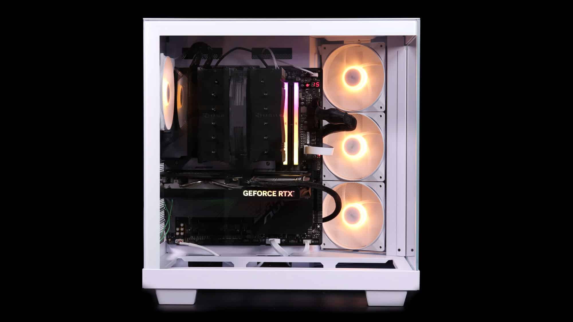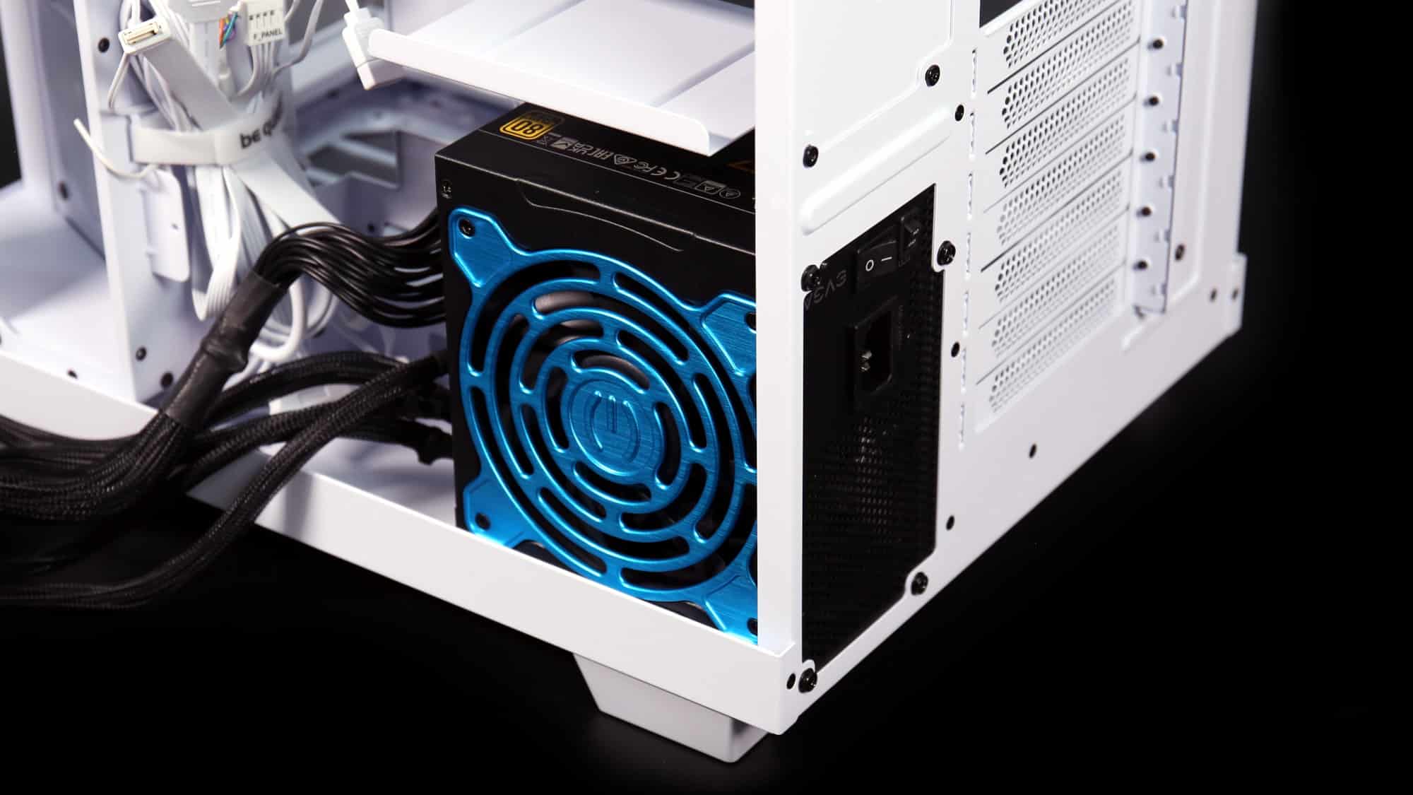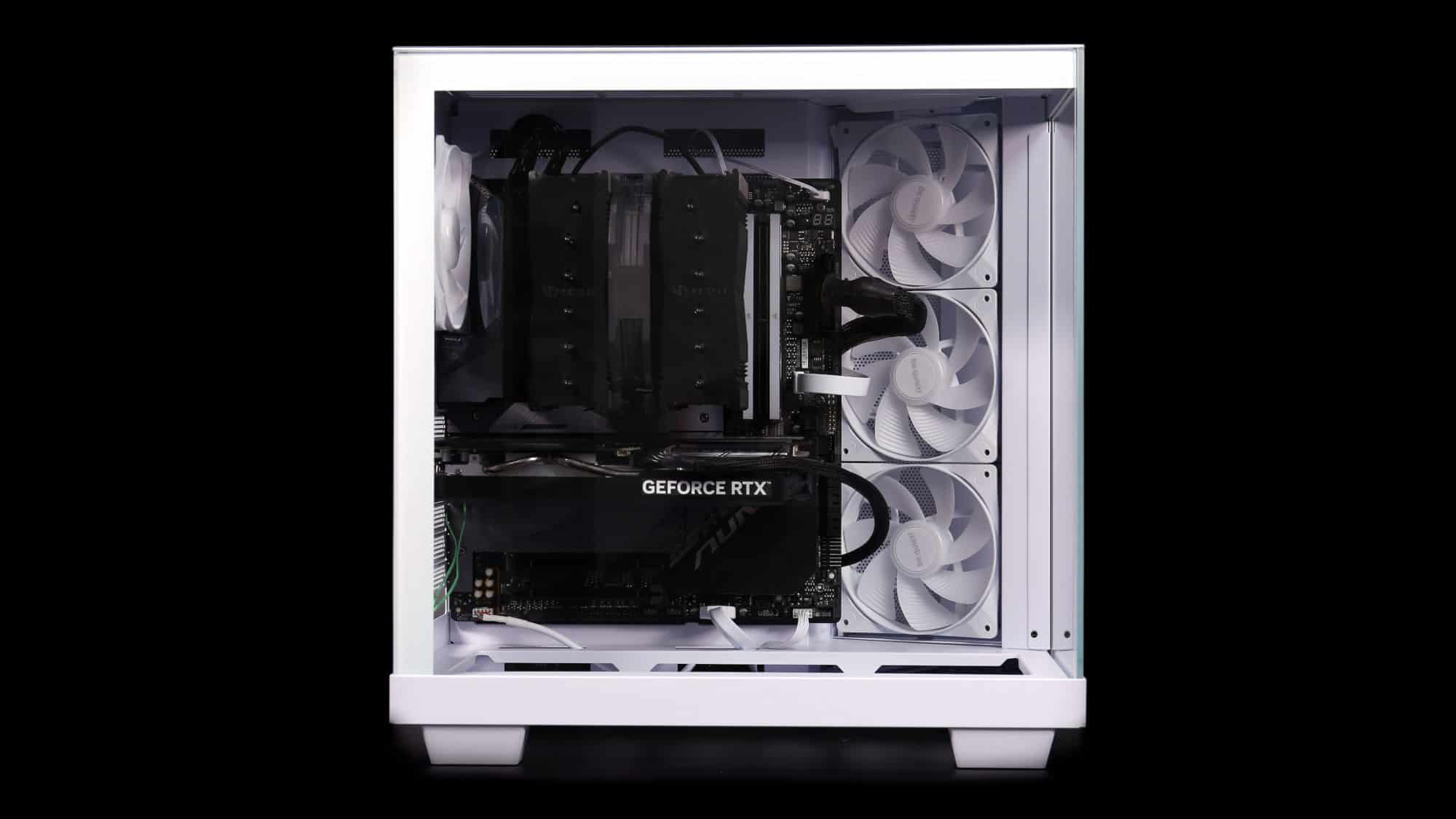 The completed build looks exceptionally clean. The black components contrast beautifully with the white chassis. A back-connector motherboard would make for a nearly cable-free look, thanks to the spacious secondary chamber.