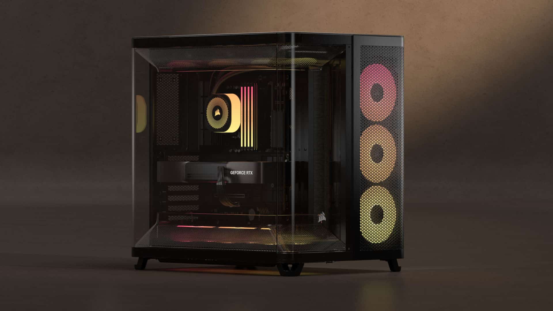 The layout may feel a bit restrictive to some, but that’s intentional. It’s optimized for specific configurations rather than trying to do everything at once. The design itself is striking, featuring two curved glass panels that sweep from the rear to the midpoint of the front panel. Corsair has gone all-in on this chassis, loading it with accessories and customization options.
