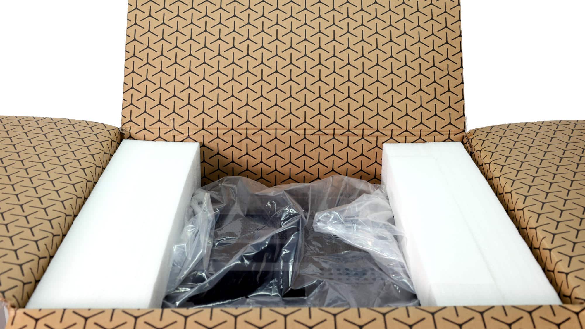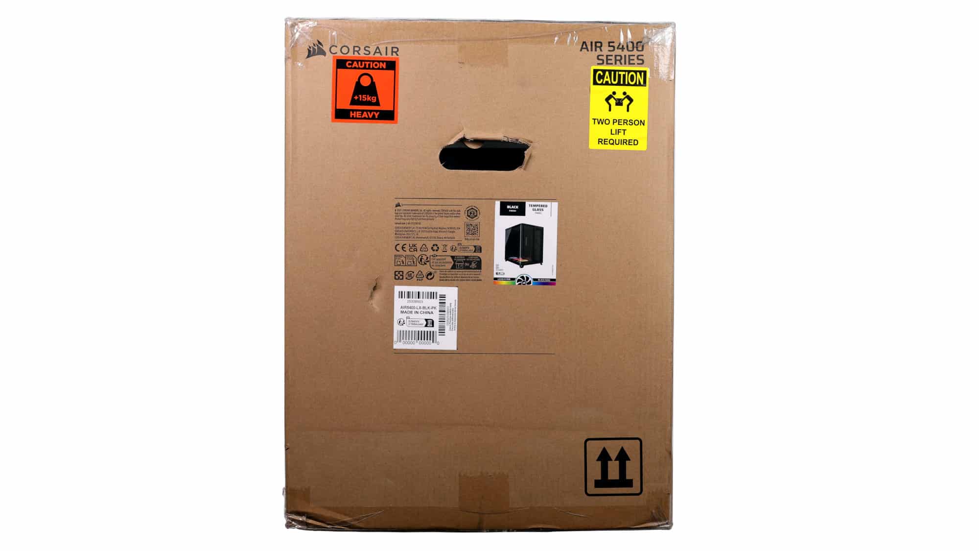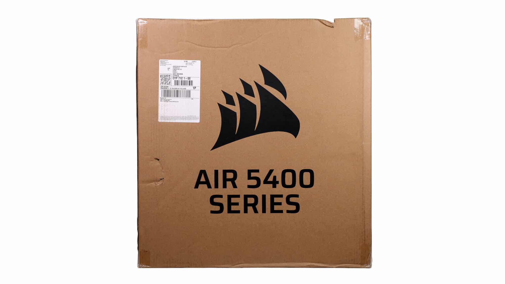 The Air 5400 arrived in a single box, protected by exceptionally thick pieces of foam on the inside. The characteristic Corsair star is printed all over the interior.