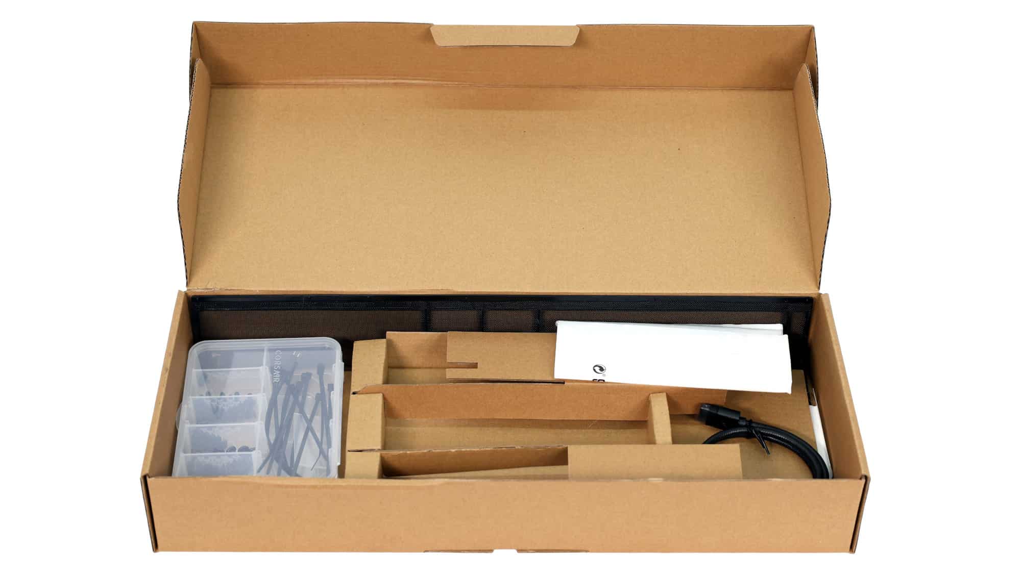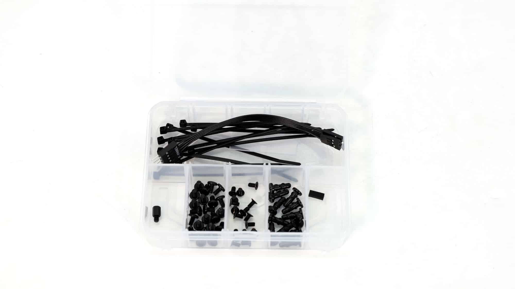 At the bottom of the chassis, there’s a box containing the bundled accessories: