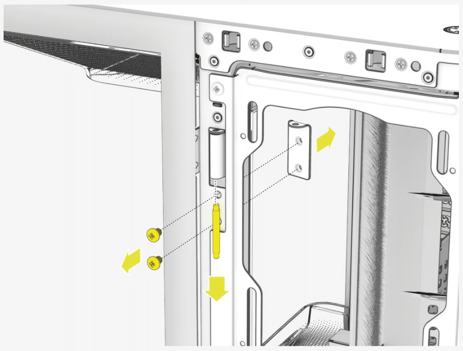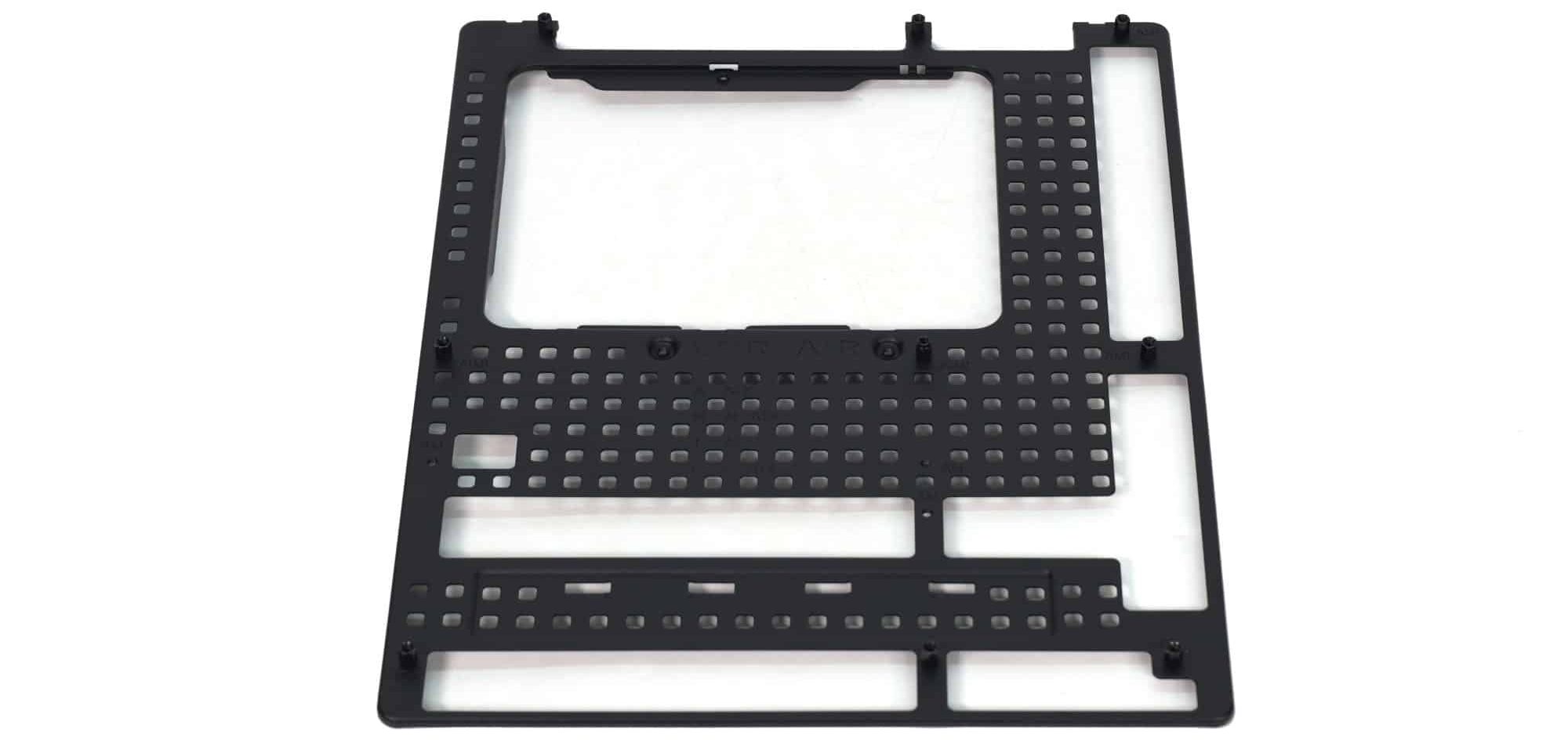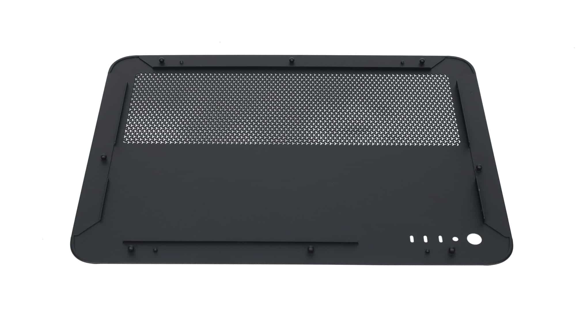 The other half of the front panel features a perforated section, attached using the same ball-and-clip system. To remove this panel, pull it away. Behind it is the third chamber, offering fairly open access.