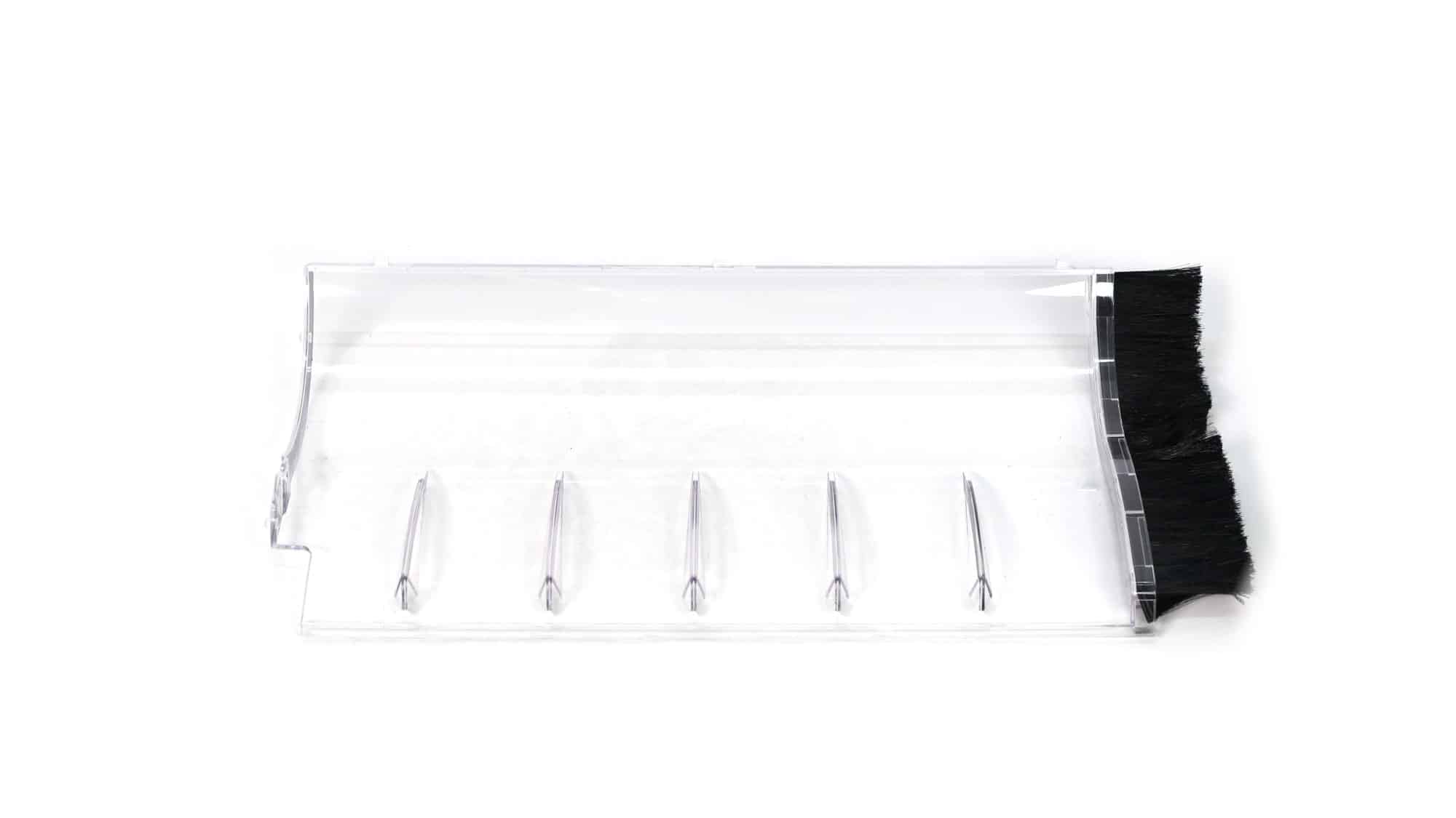 There is also a vertically mounted brush at the far right of the motherboard tray. It’s held in place by a single screw at the top and a metal clip at the bottom.