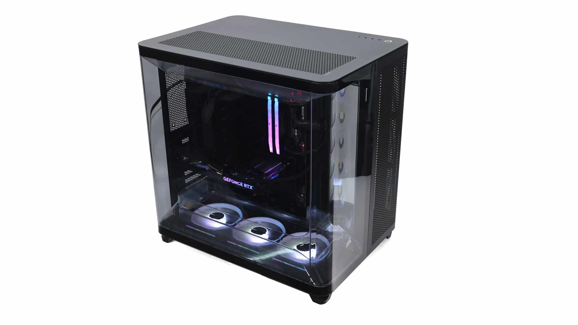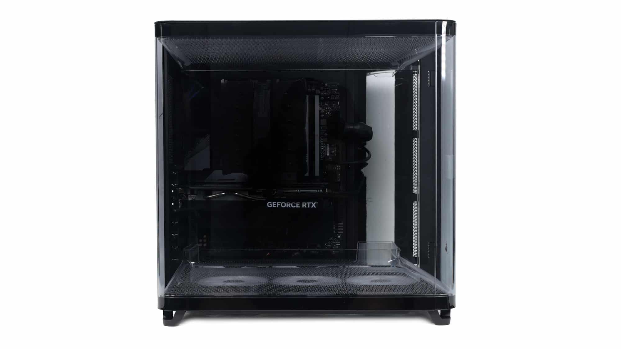 We didn’t go to that extent during our build, but the process held no surprises. As usual, the PSU was the first component installed. The included PSU support bracket helps keep it in place while you secure it with screws. Next came the motherboard, which we installed directly into the chassis with the CPU, RAM, and cooler already mounted. Alignment was spot-on, as expected. Finally, we installed the GPU and connected all power and data cables to complete the system. The fused front-panel I/O is well appreciated.