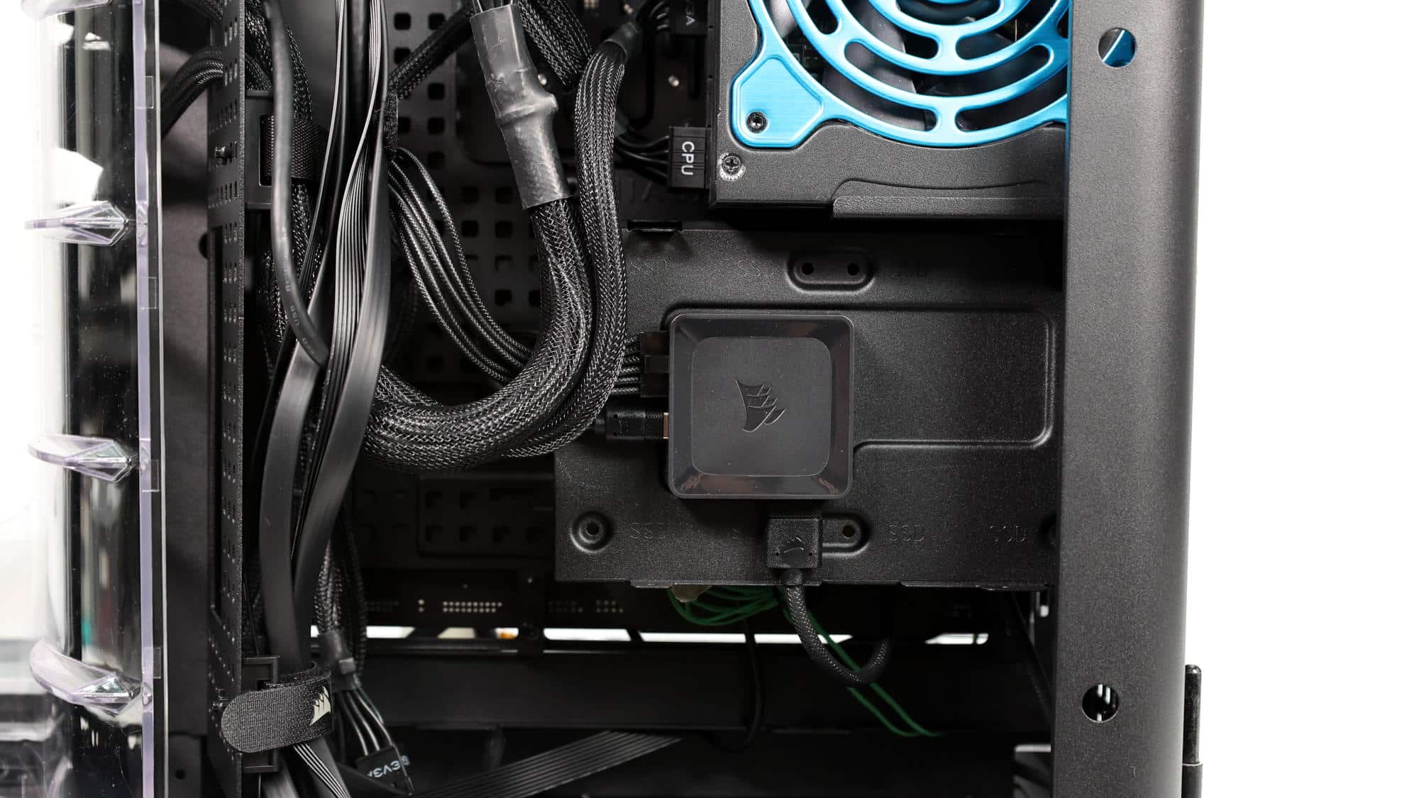 Cable management for the fans was a breeze thanks to the iCUE system, though a well-thought-out PWM daisy-chain setup would work just as well. The remaining cables were neatly routed using the built-in cable management tray. The included Velcro straps proved handy, and within a few minutes, the system was clean and ready to go.