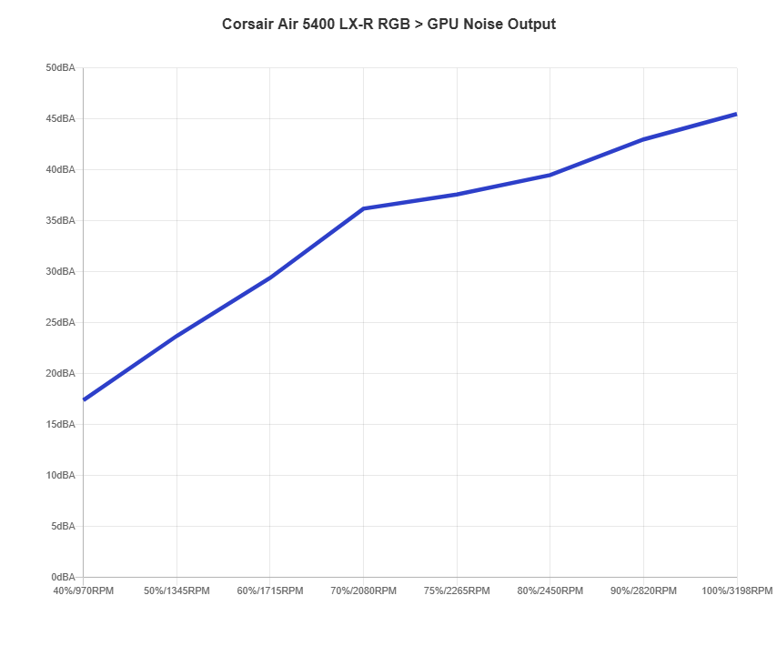 At around 70% PWM, the GPU noise increases slightly, deviating from the relatively linear trend shown in the chart.