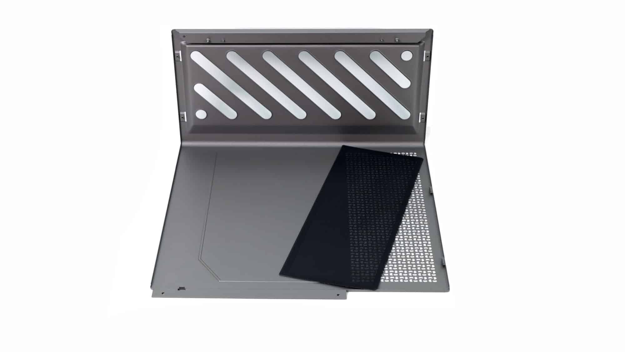 On top, you’ll also find a magnetic panel that sits over the larger panel beneath it. This additional magnetic piece serves as decoration and as a cover for the large opening below. It aligns with two pegs and is held in place by strong magnets. It doesn’t offer as much dust protection as the mesh filter it replaces, but it’s not that bad.