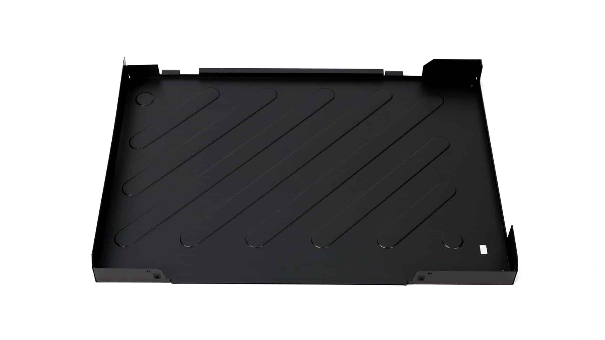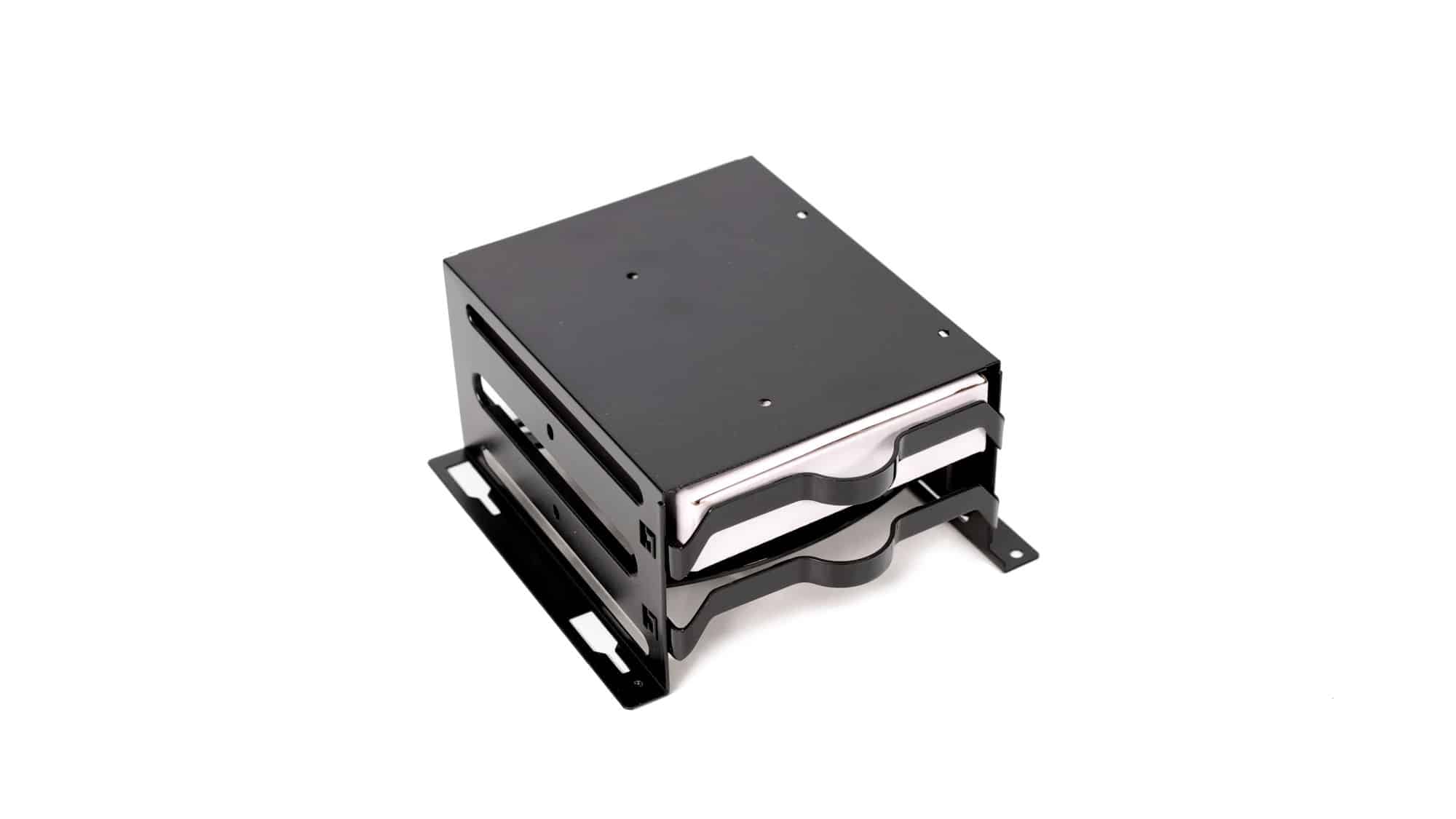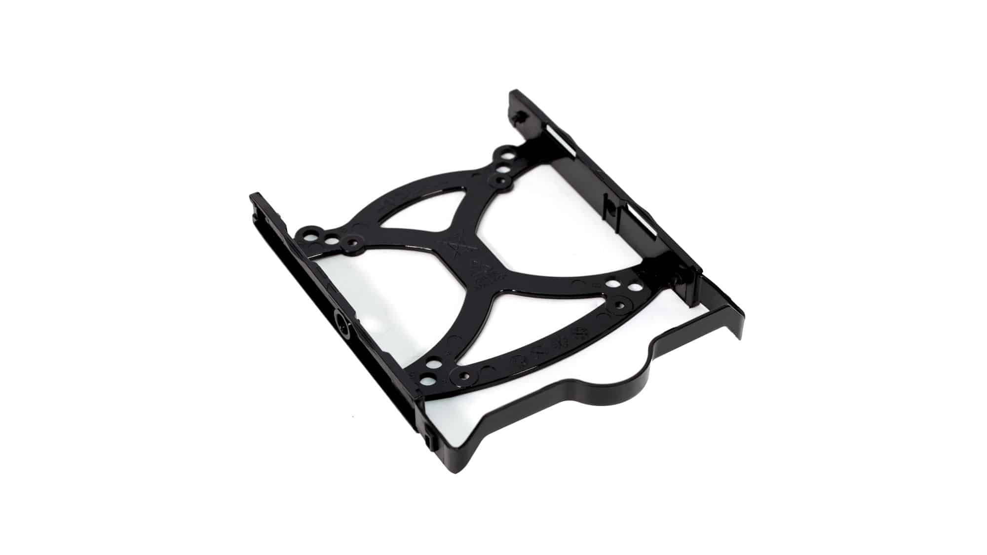 In the bottom chamber, you have a more traditional drive cage with space for two 3.5-inch or two 2.5-inch drives inside, plus room for an additional 2.5-inch drive on top. The drive trays are plastic, somewhat flimsy, but functional. The 3.5-inch drives can be installed tool-free, while 2.5-inch drives require screws.
