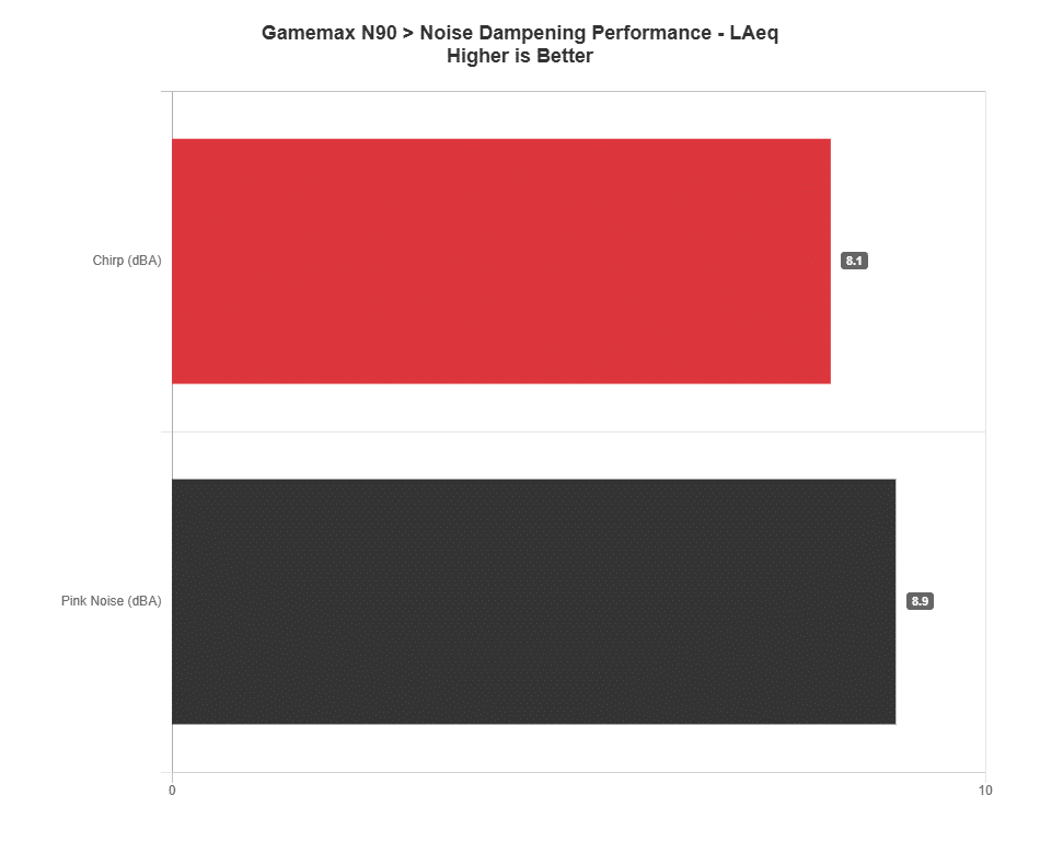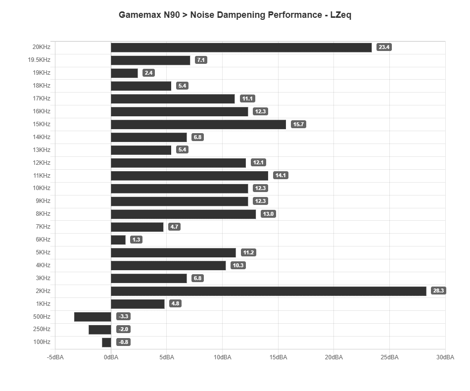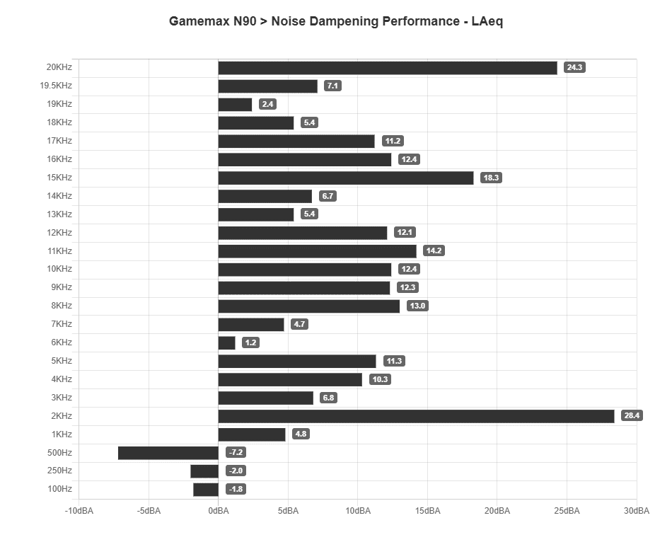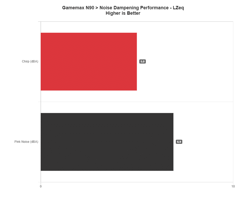 Like most chassis, this one struggles at low frequencies, where it tends to act as an amplifier. At 1 kHz and above, however, the noise-damping performance is very good.