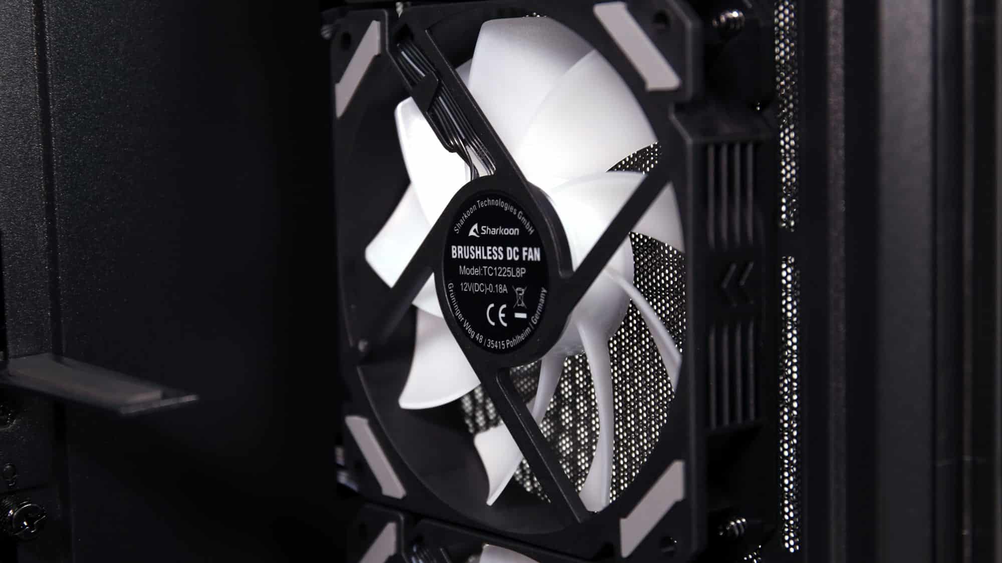 Sharkoon has equipped you with four 120mm Shark Force ARGB fans, but they spin at a slower speed than the classic retail versions, as most case fans do. They don’t have any daisy-chaining options, but the included fan hub makes up for it. It may have just enough space for the included fans only, but it saves you the headache of figuring out how to connect everything to your motherboard or having to buy a separate hub.
