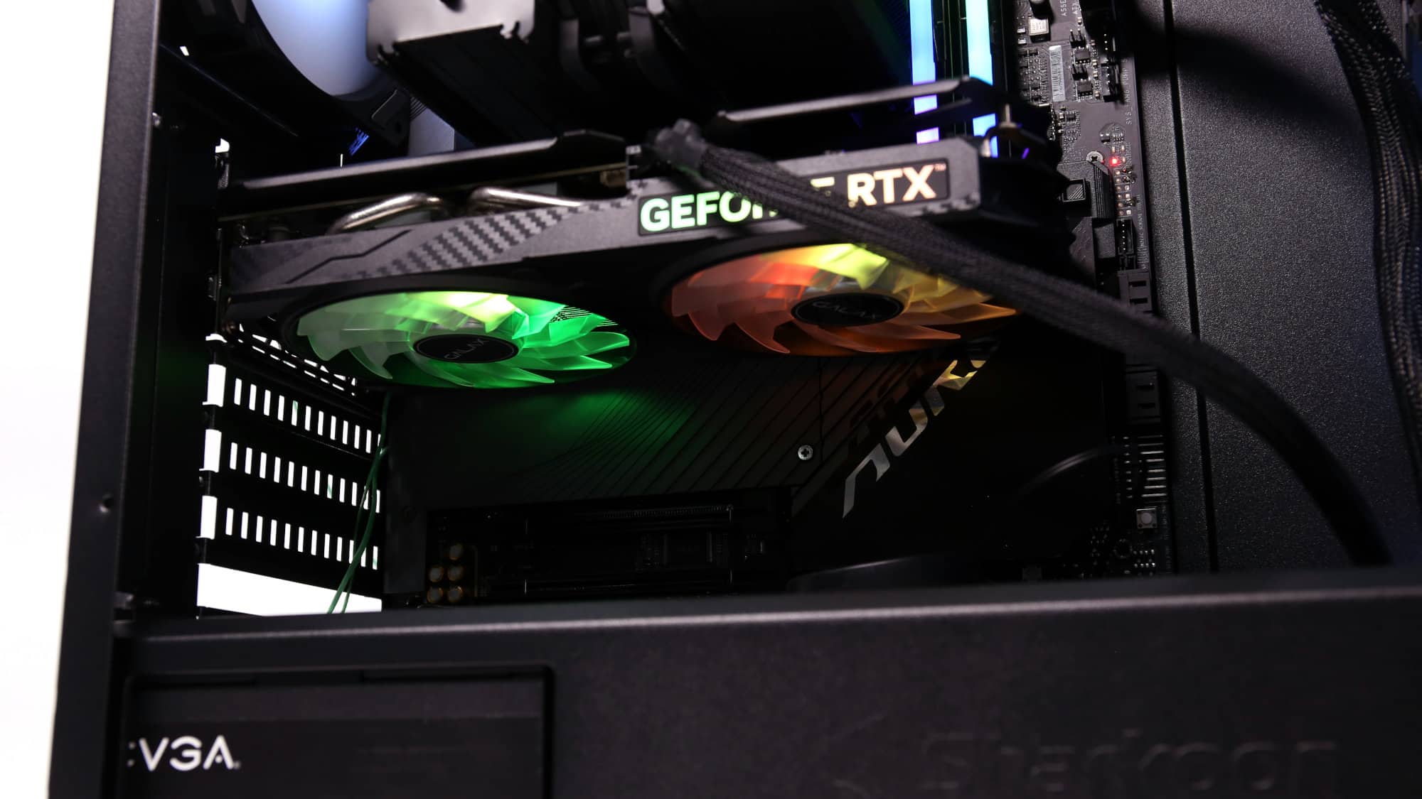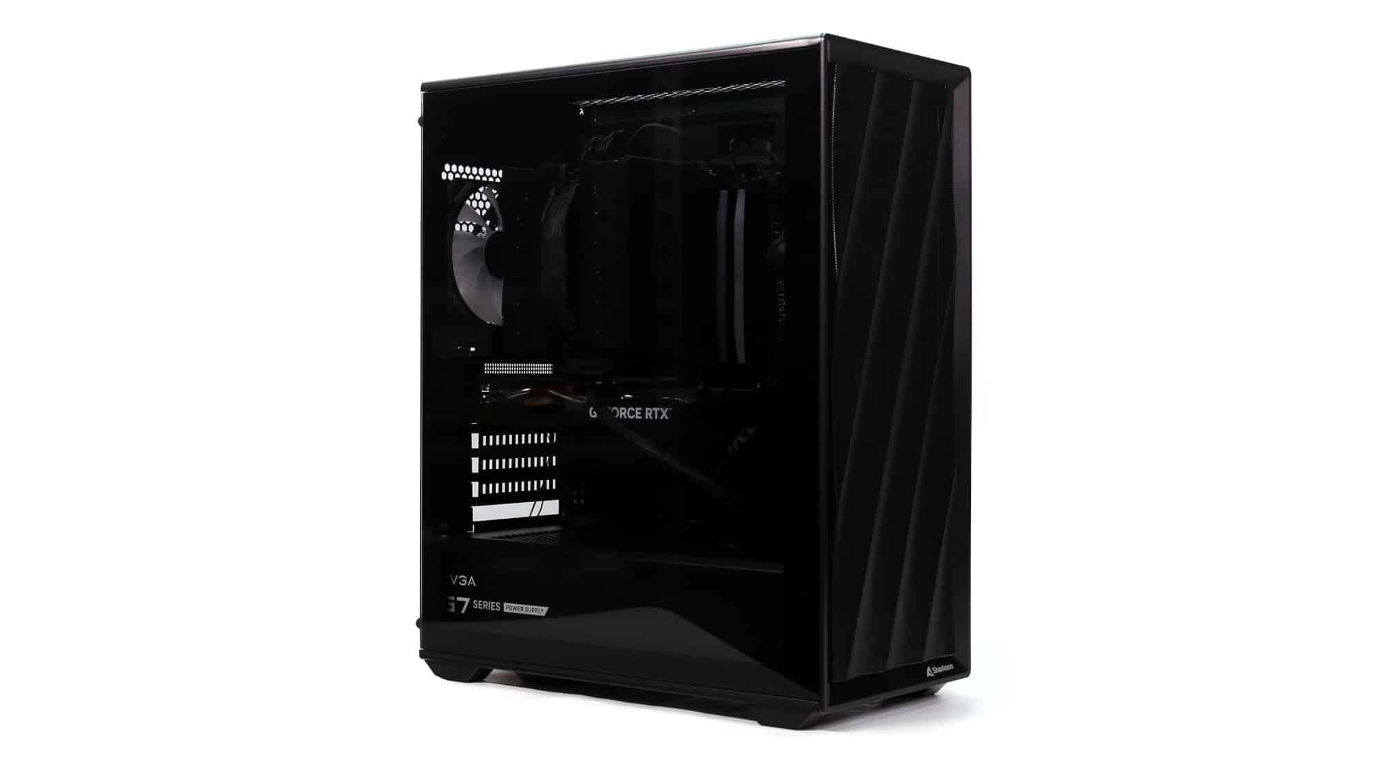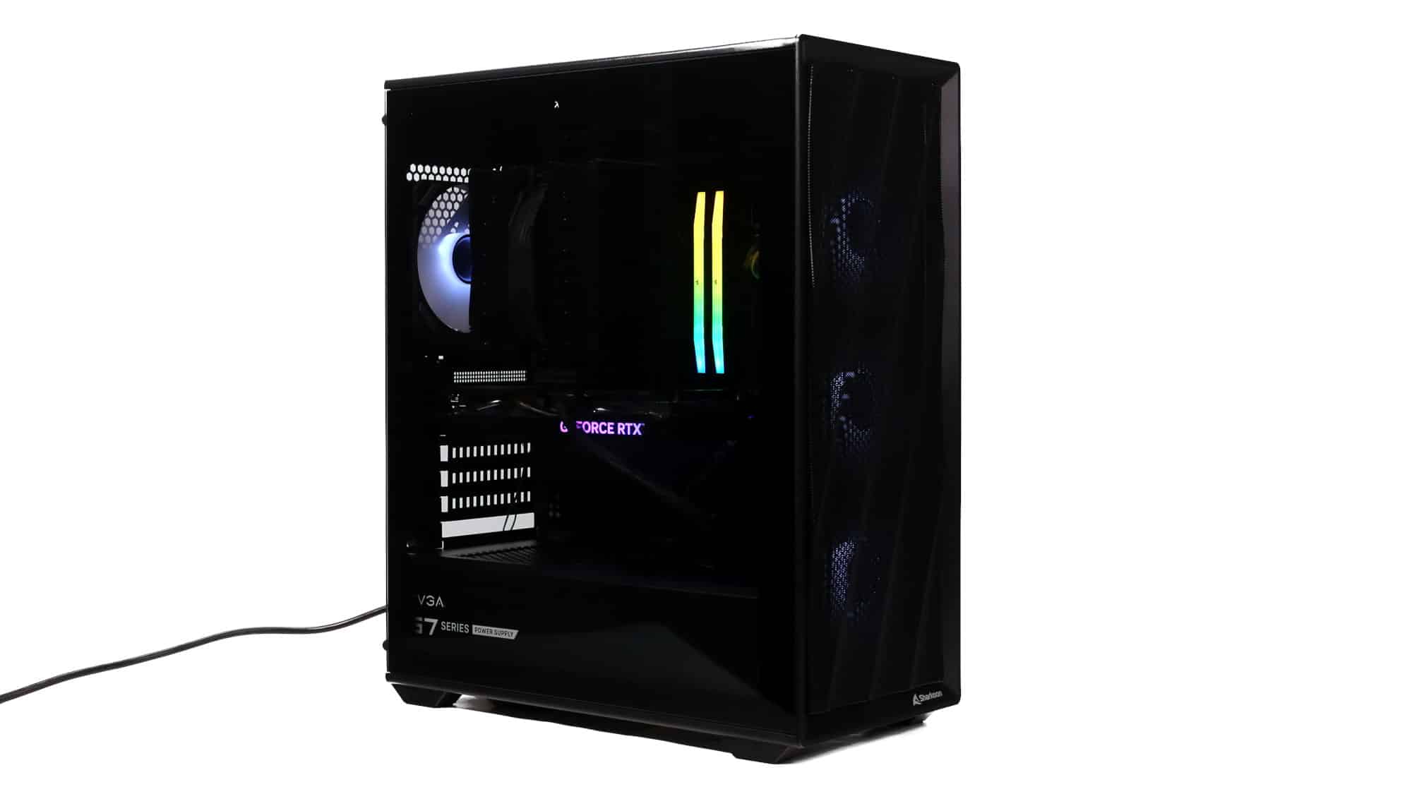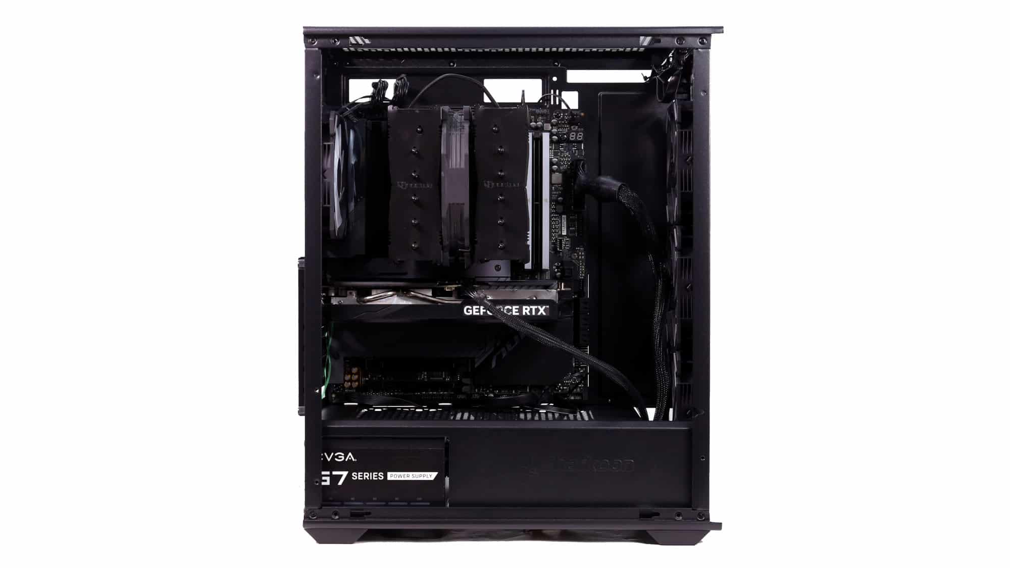 The finished build had a clean, all-black theme. With the ARGB lighting on, the case transforms visually; the front mesh mutes brightness, but the side glass still provides a bold glow.