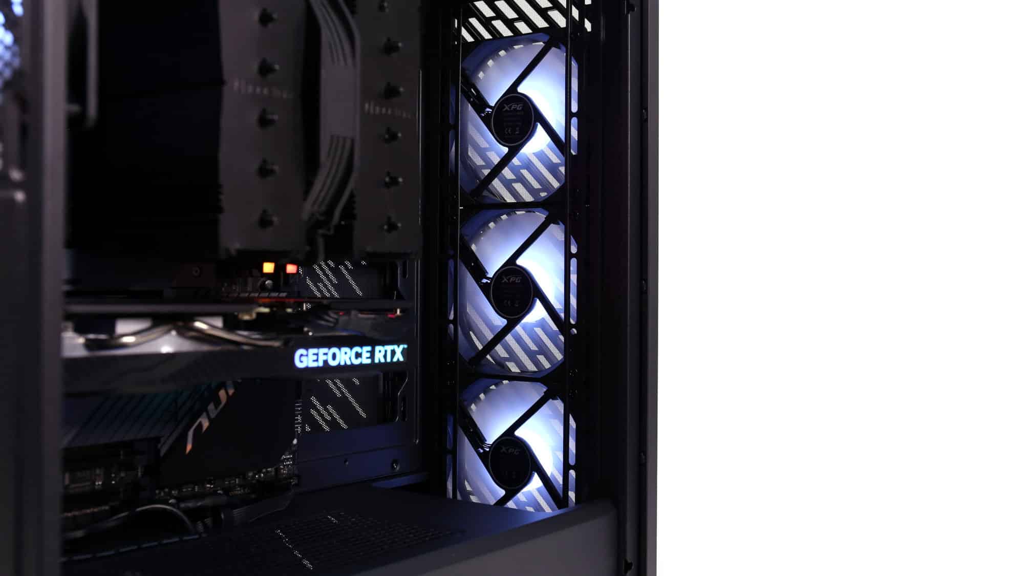 With the lights off, the fans command attention from every angle. In addition, the fans’ ARGB lighting is clear and bright.