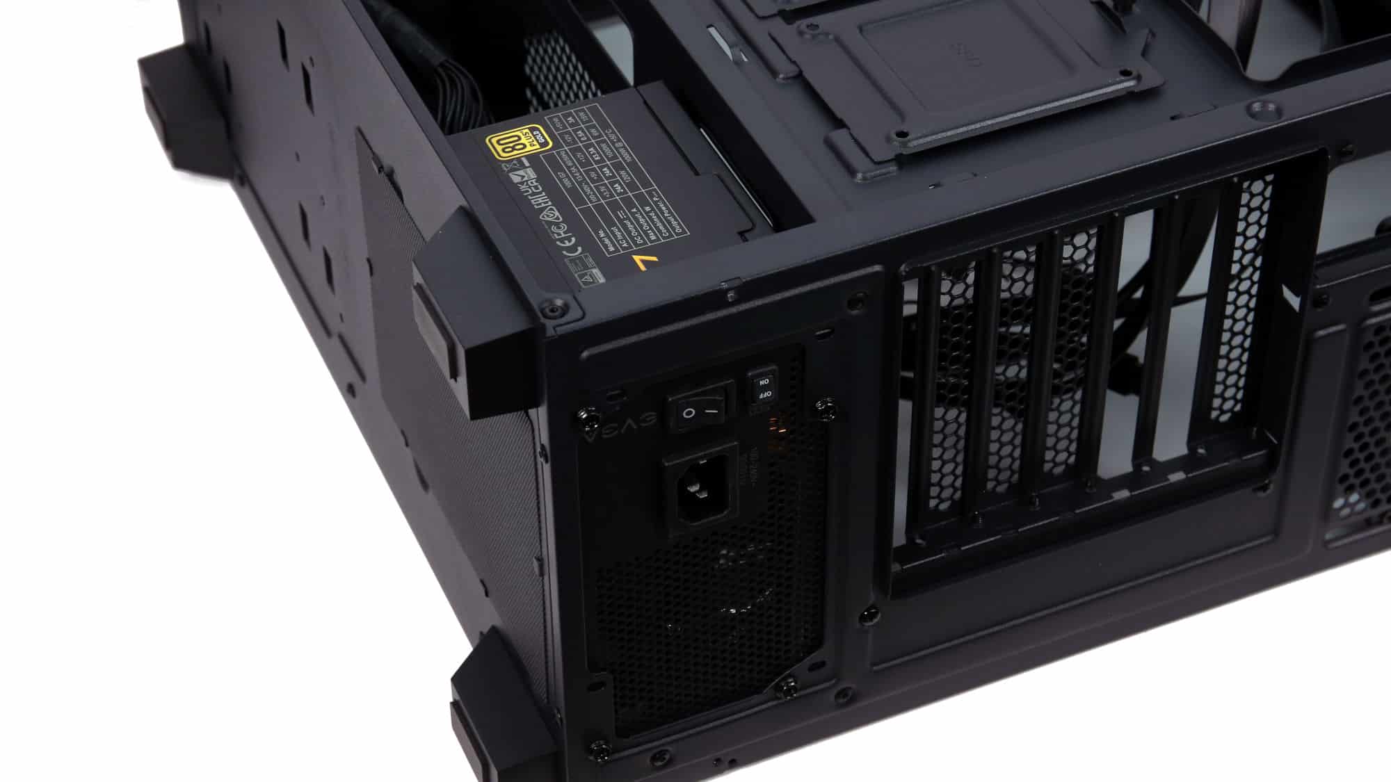 The PSU was installed first, sliding in from the side and mounting to the rear with its fan facing down. Padding beneath the PSU adds stability. Next, the motherboard and principal components (CPU, RAM, and cooler) were mounted. Fitment is excellent, the standoffs align perfectly, and the integrated I/O shield clears easily without requiring fan adjustment, as is often the case. All cables were connected before the GPU installation. The chassis’s tall design makes connecting CPU power cables simple, even for larger hands.