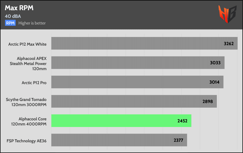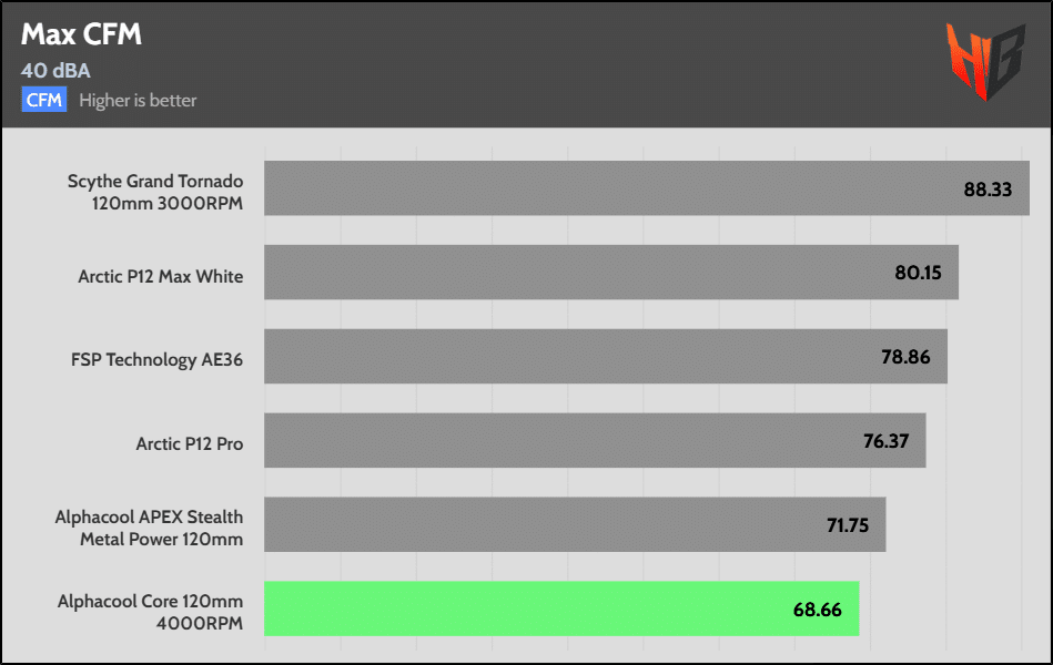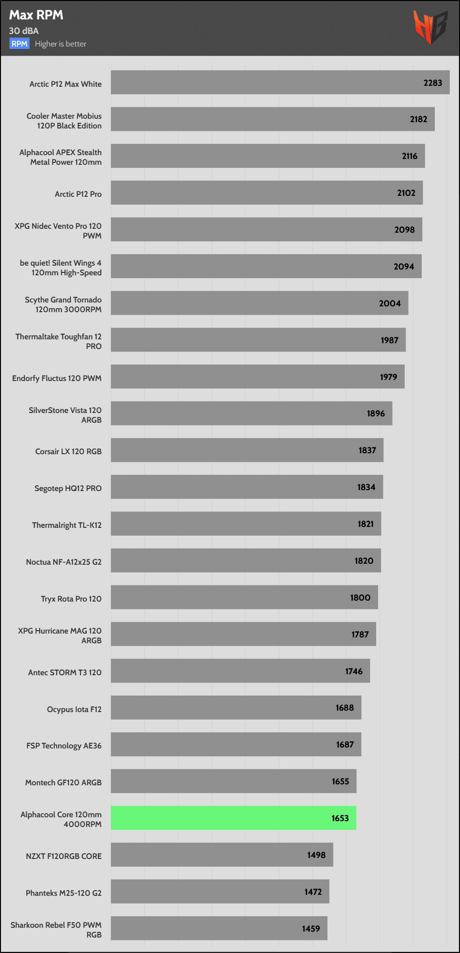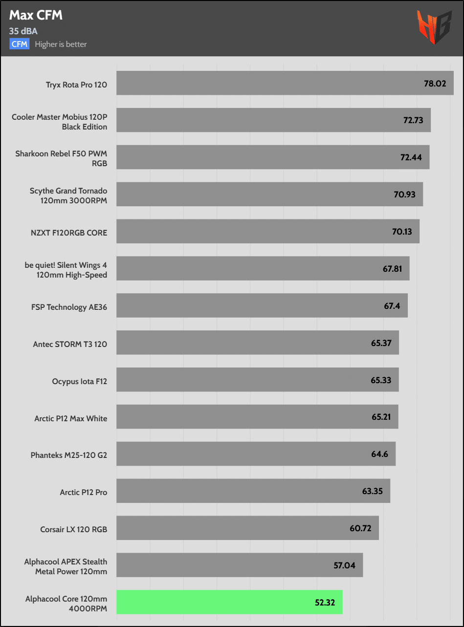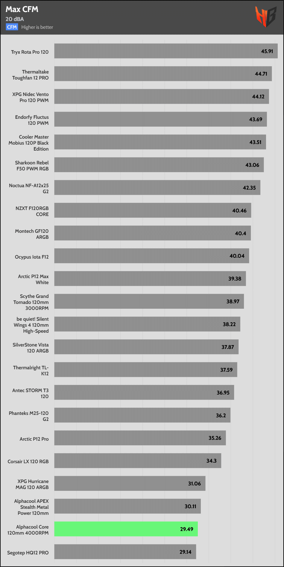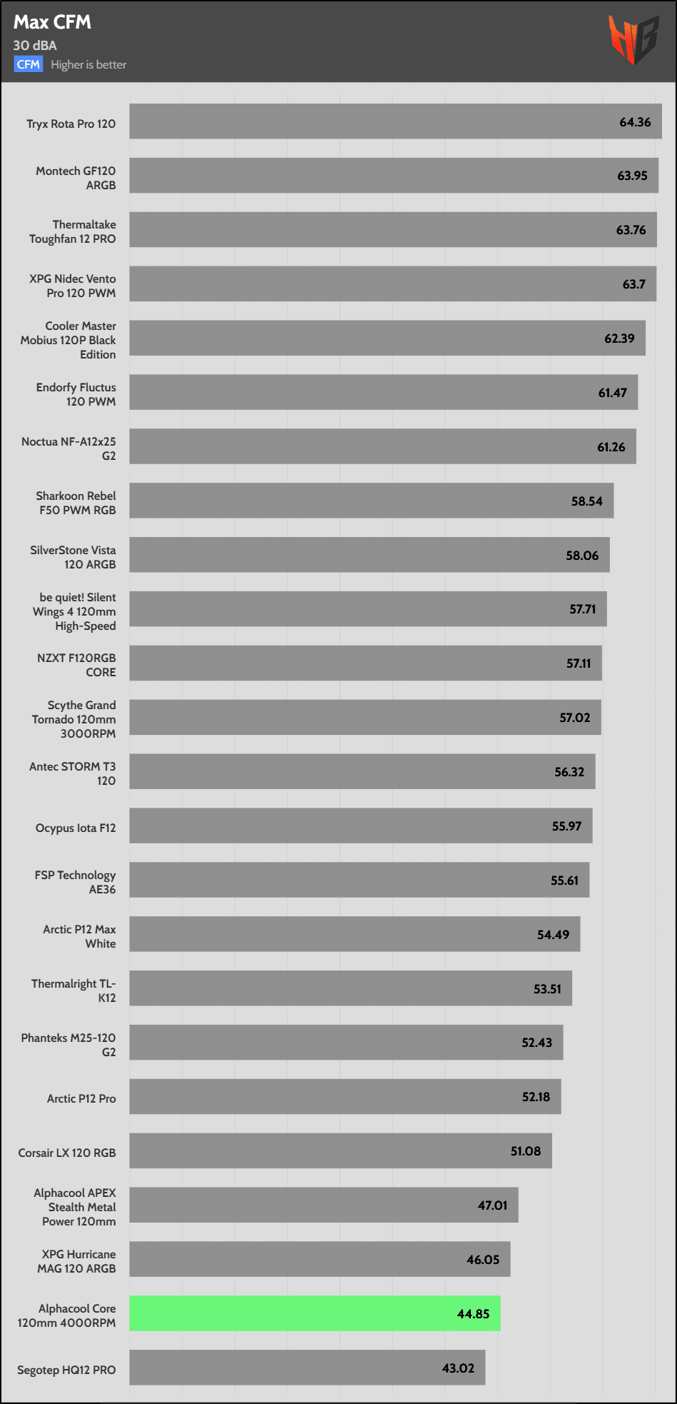 And again, the Alphacool Core 4000RPM 120mm is not only 3 times cheaper than the Noctua NF-A12x25 G2 but also better as a radiator fan.