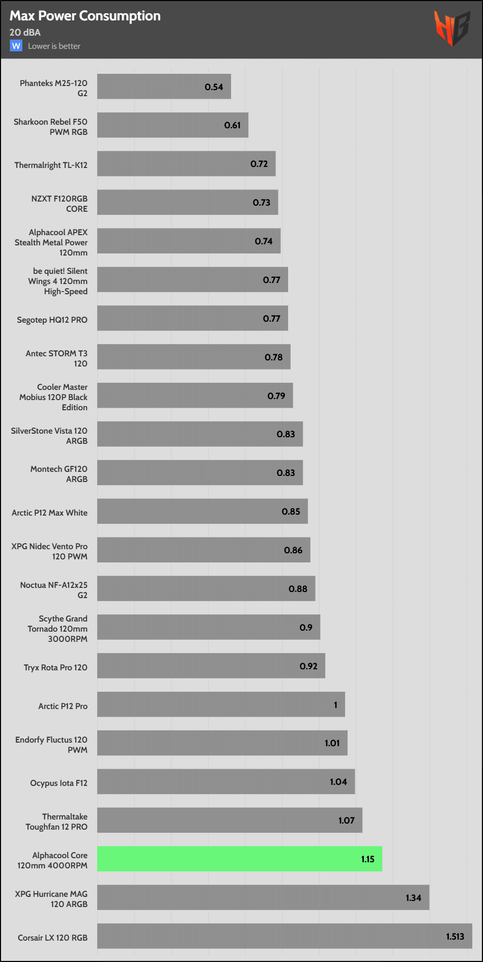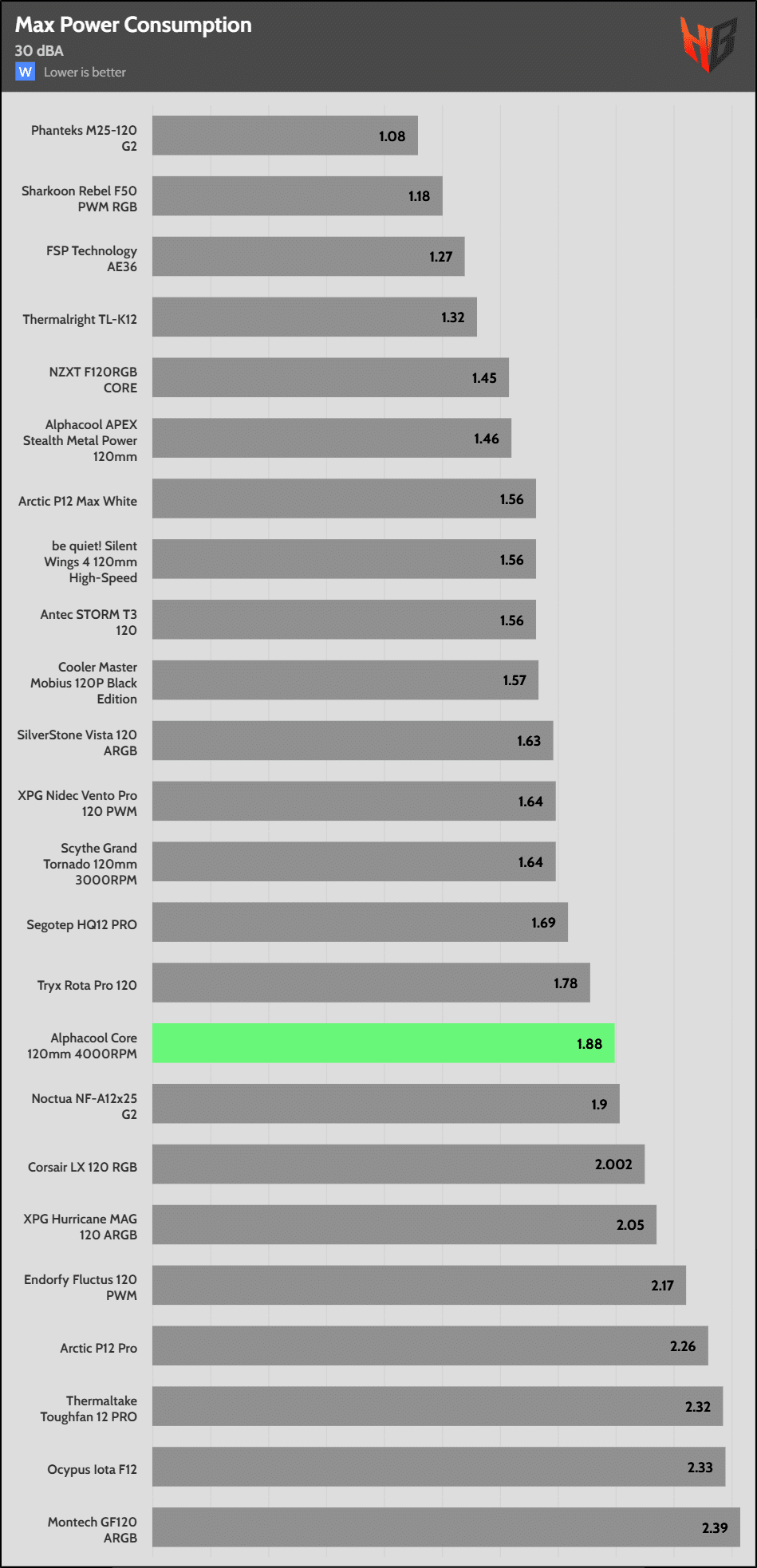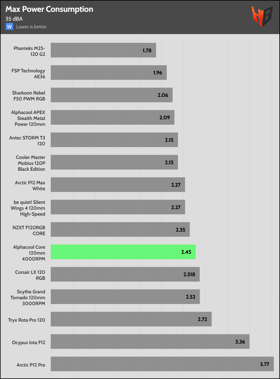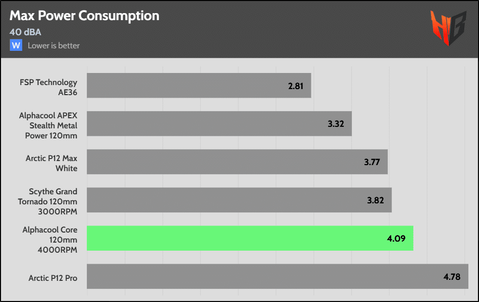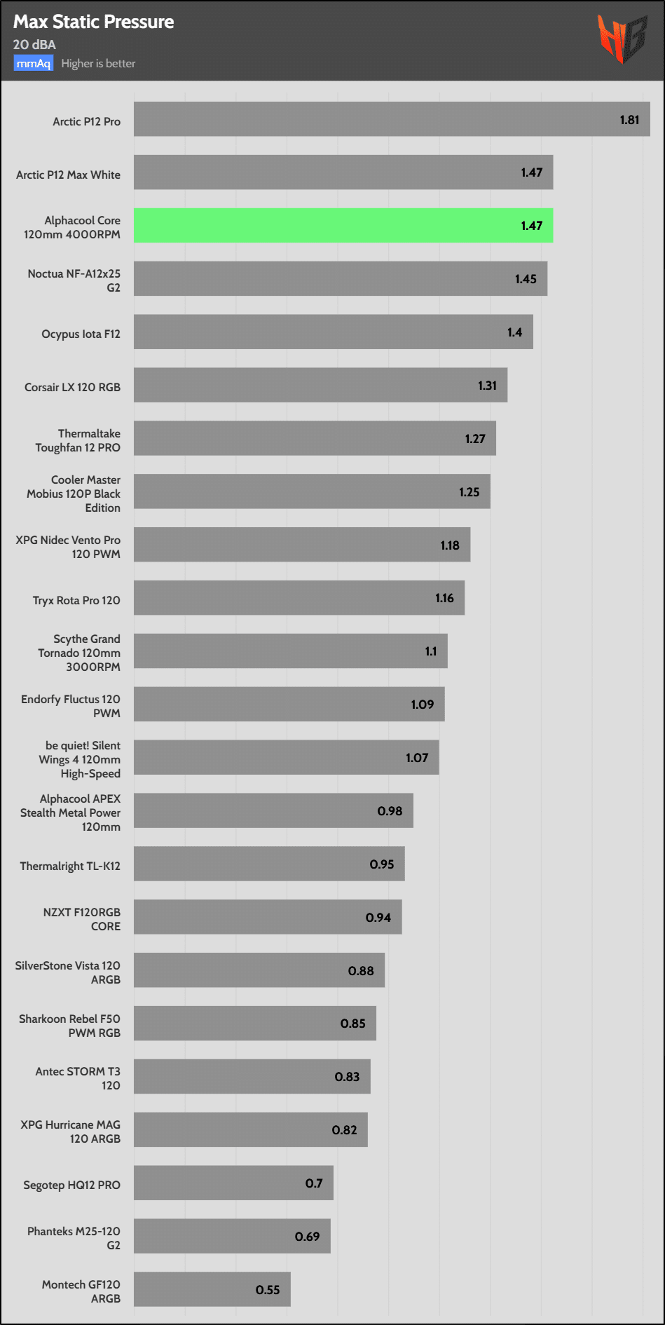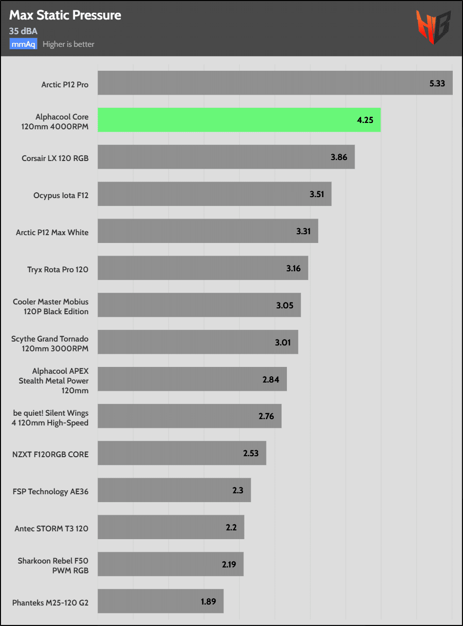 And again, the Alphacool Core 4000RPM 120mm is not only 3 times cheaper than the Noctua NF-A12x25 G2 but also better as a radiator fan.