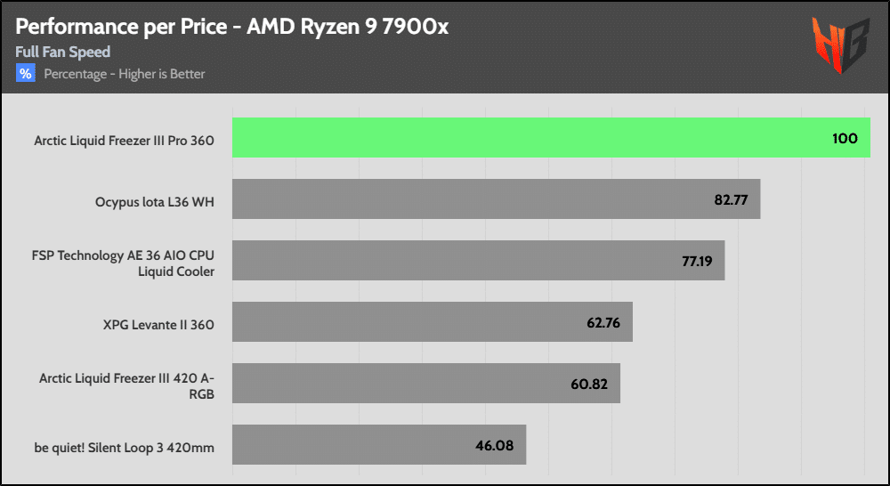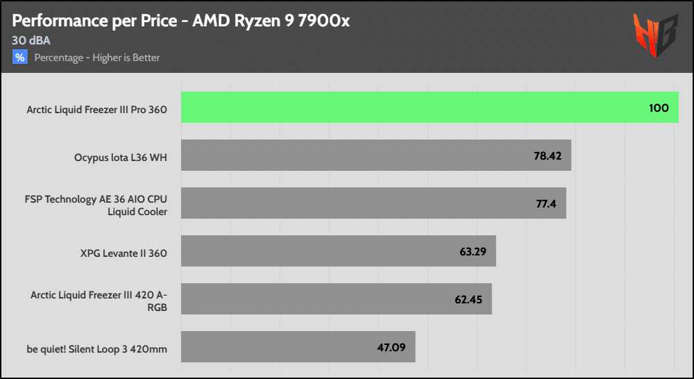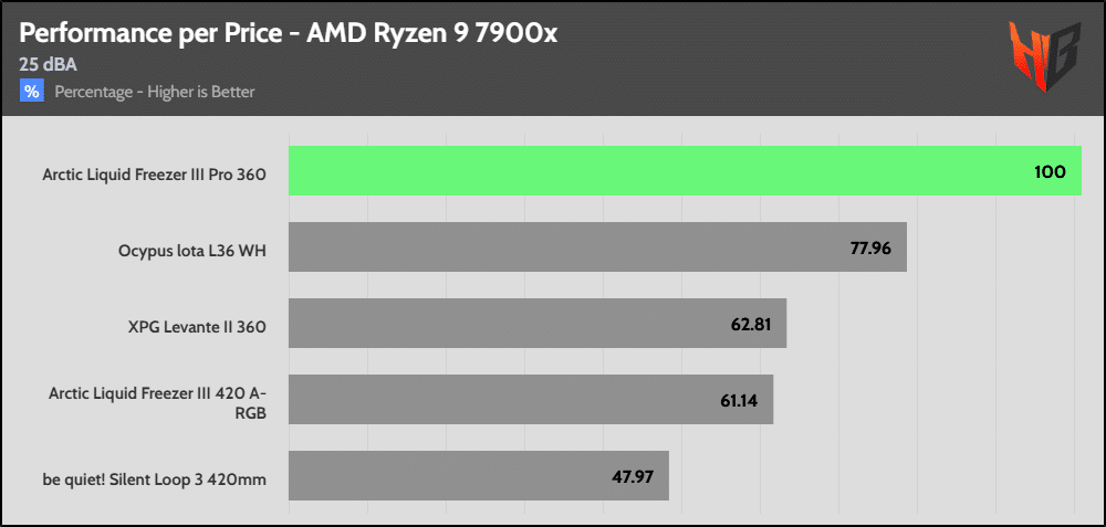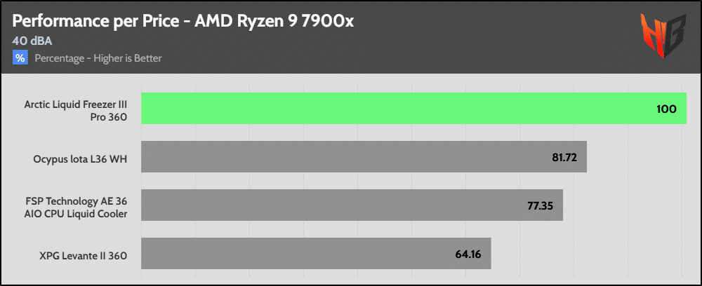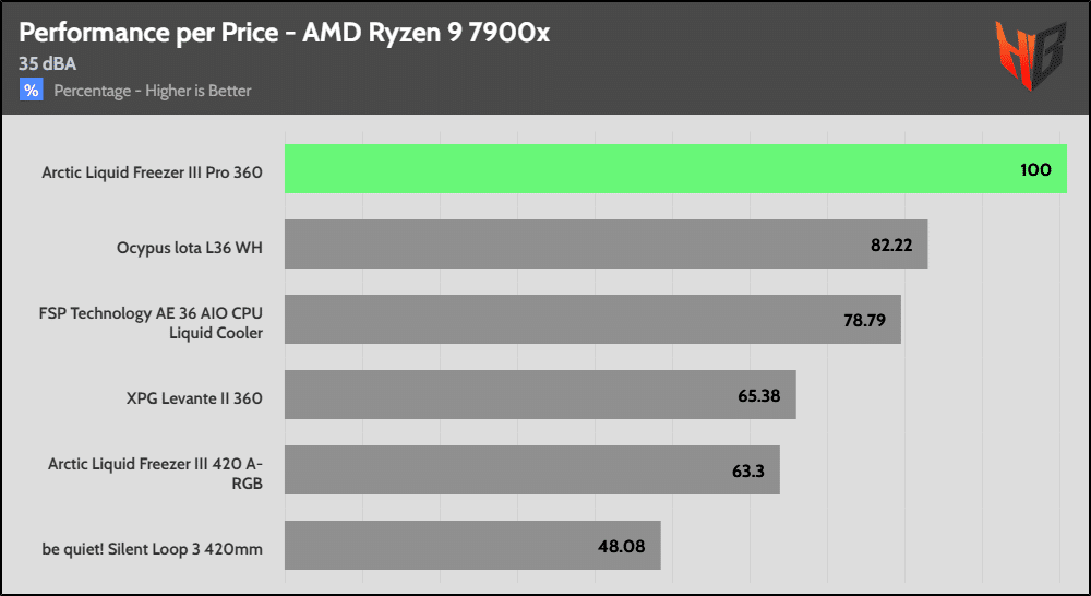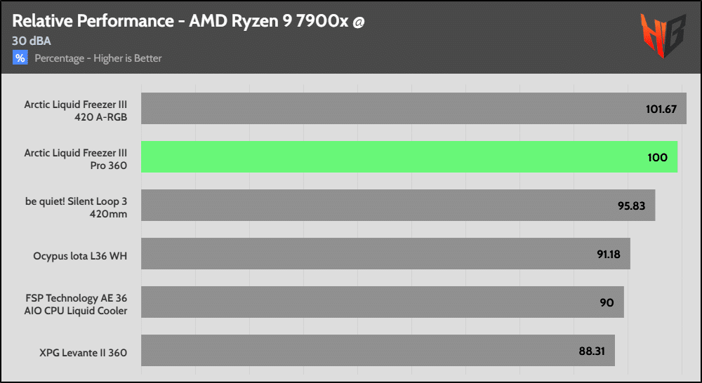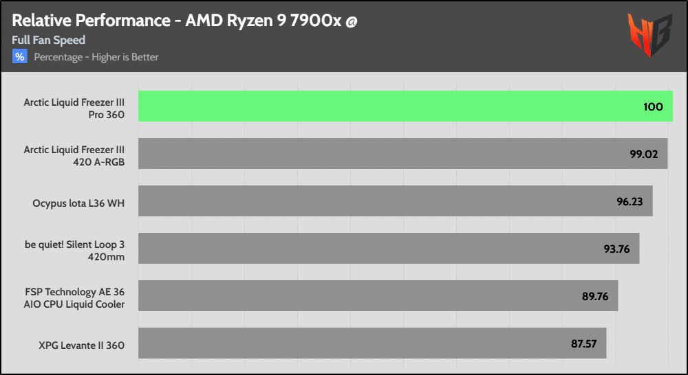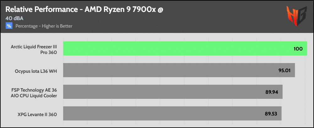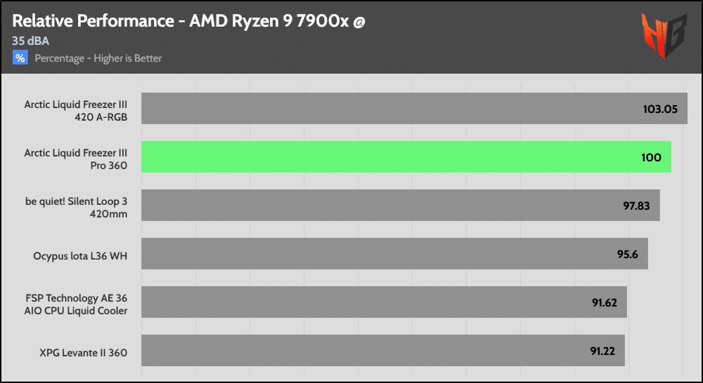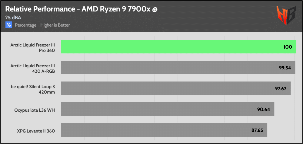 Each chart shows the cooler under test as 100% and every other product’s performance as relative to it.