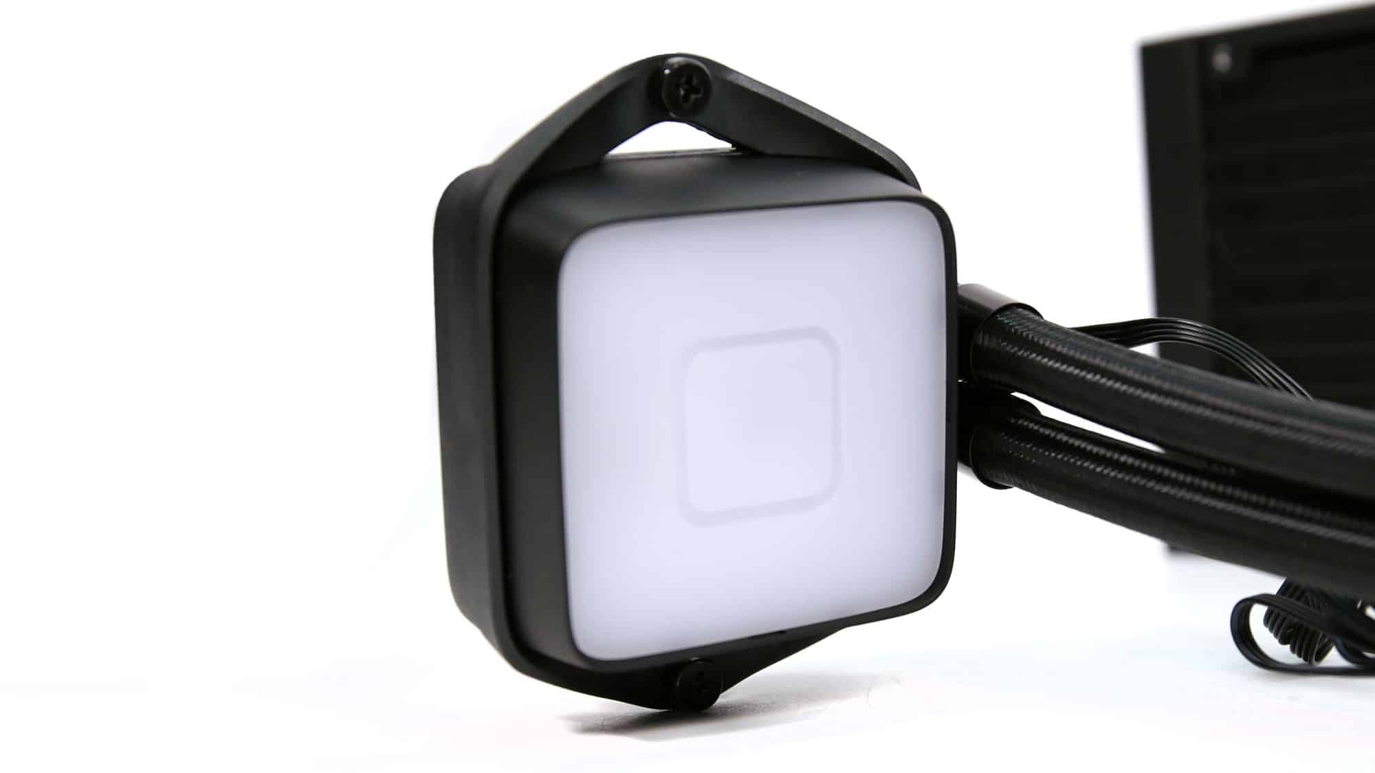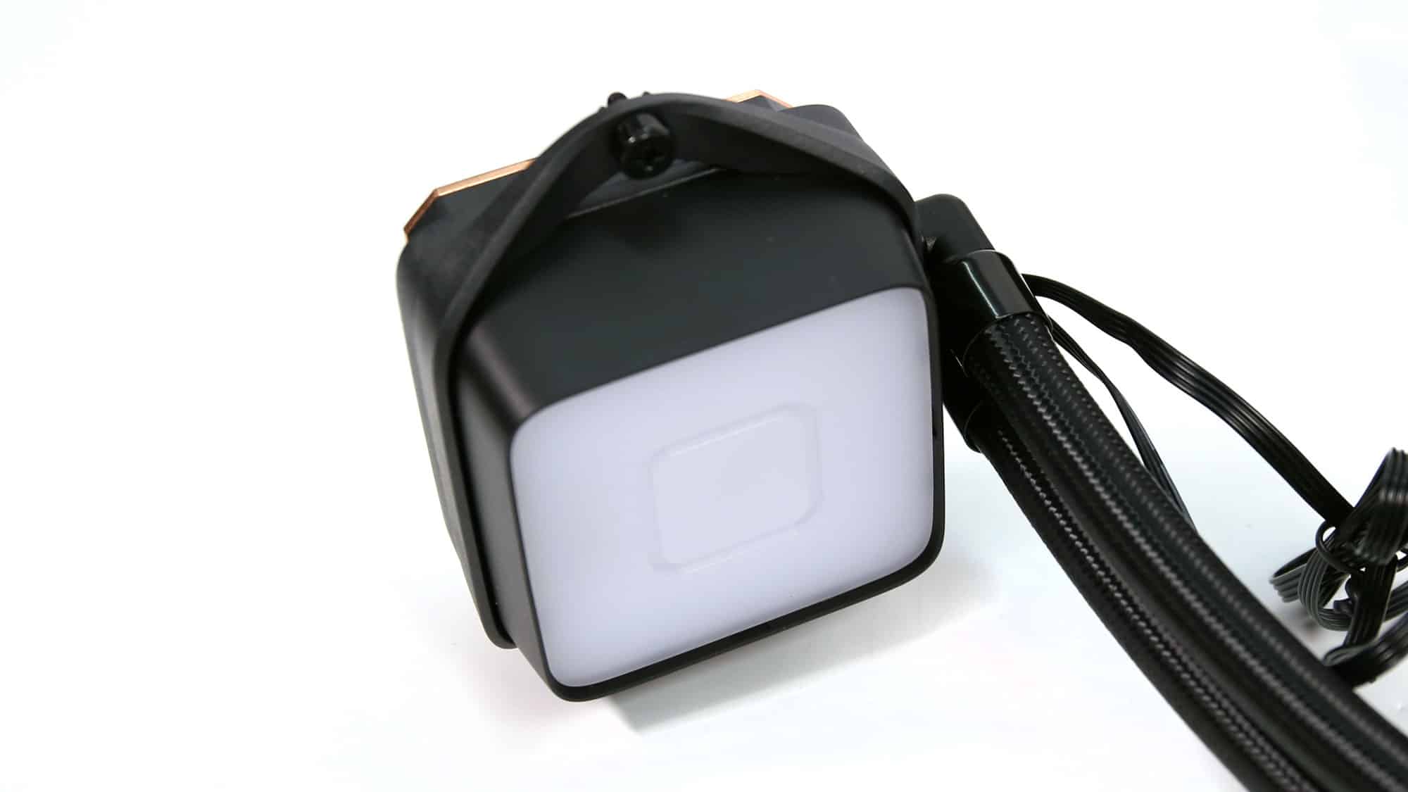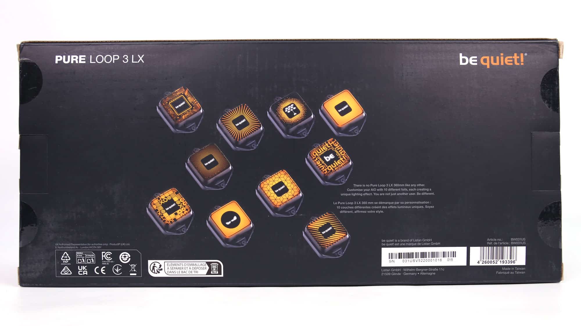 The box features a photo of the AIO on its face. Around the back, you will find some photos of the interchangeable lighting foils that you can apply at the top of the block, creating several interesting effects.